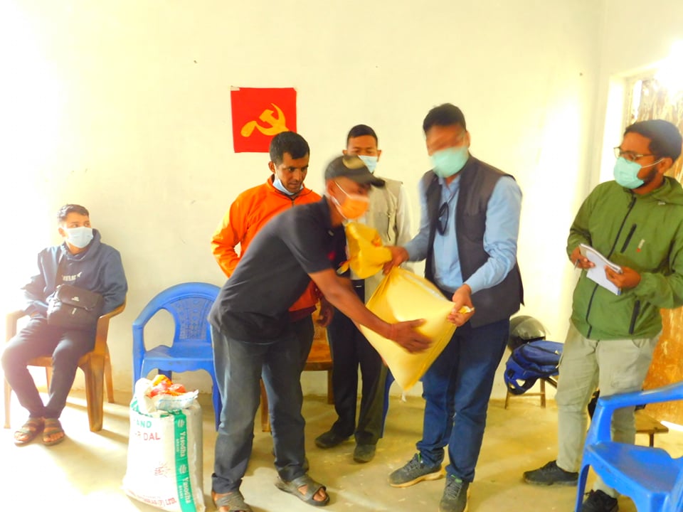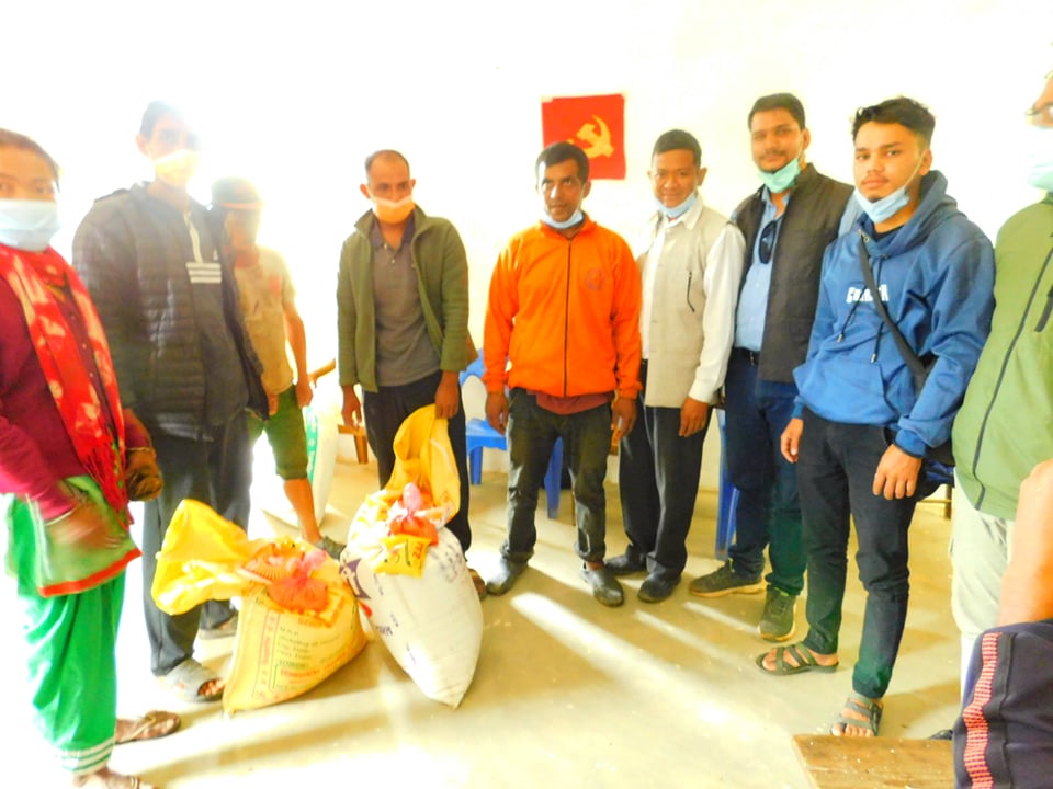 नेपाल कम्यूनिष्ट पाटी अर्घाखाँची र अखिल (क्रान्तिकारी) अर्घाखाँचीले संयुक्त रुपमा  विश्व माहामारीको रुपमा फैलिएको  कोभिड–१९ ले प्रभावित पारेको बस्तीमा ८ अपाङग तथा गरिब घर पविारलाई राहात स्वरुप चामल, नुन र दाल बितरण गरेको छ ।