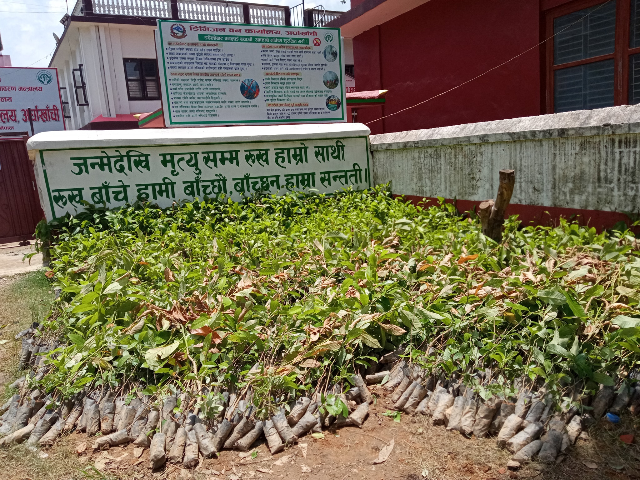 सन्धिखर्क, अर्घाखाँची (अर्घाखाँचीडट्कम) । अर्घाखाँची जिल्लामा डिभिजन वन कार्यालयले विभिन्न जातका बिरुवाहरु बितरण शुरु गरेको छ ।