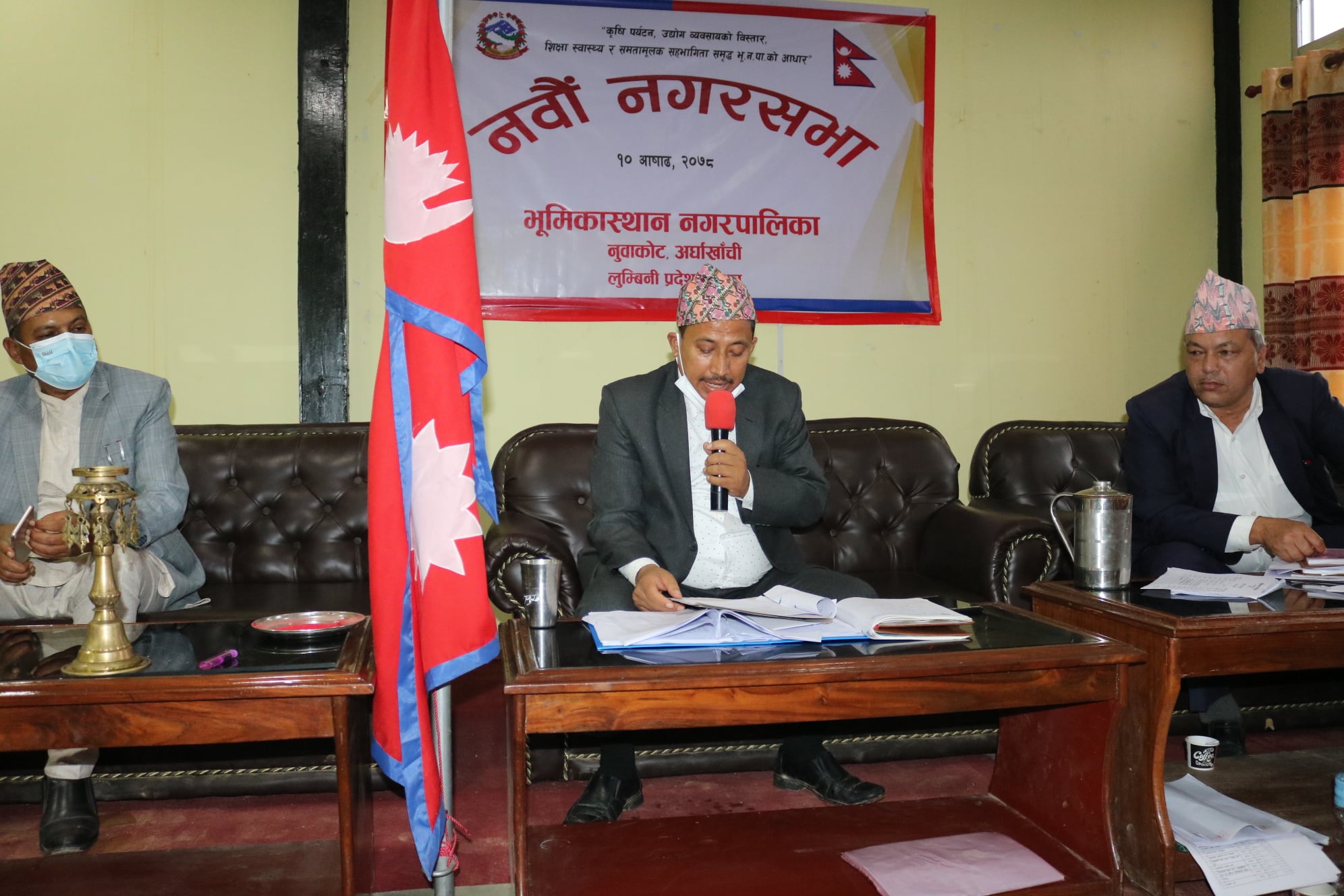 भूमिकास्थान नगरपालिकाले आर्थिक वर्ष २०७८, ७९को लागि बिहीवार नवौ निती तथा कार्यक्रम तथा नगरसभा सभाबाट सर्वसहमतिले पारित गरेको हो ।