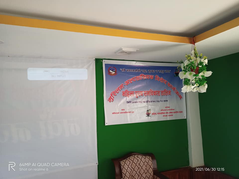 सन्धिखर्कमा मुस्लिम अल्पसंख्यक विषेश कार्यक्रम अन्तर्गत महिला पुरुष समविकास तालिम बुधवारबाट शुरु भएको हो ।