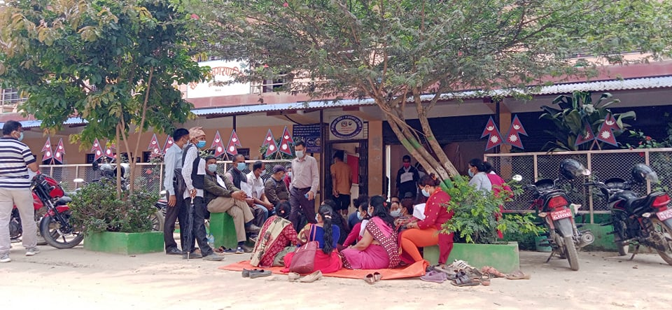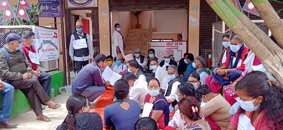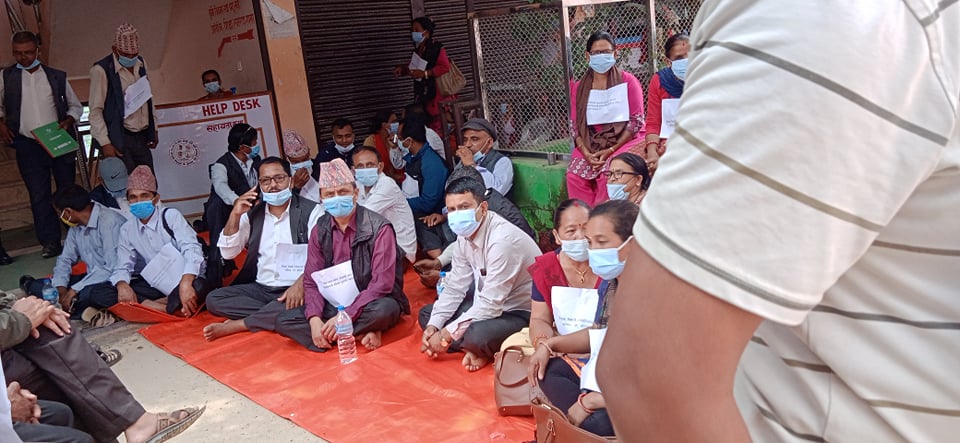 सन्धिखर्क नगरपालिका अगाडि शिक्षकहरुको धर्ना (फोटो फिचर)