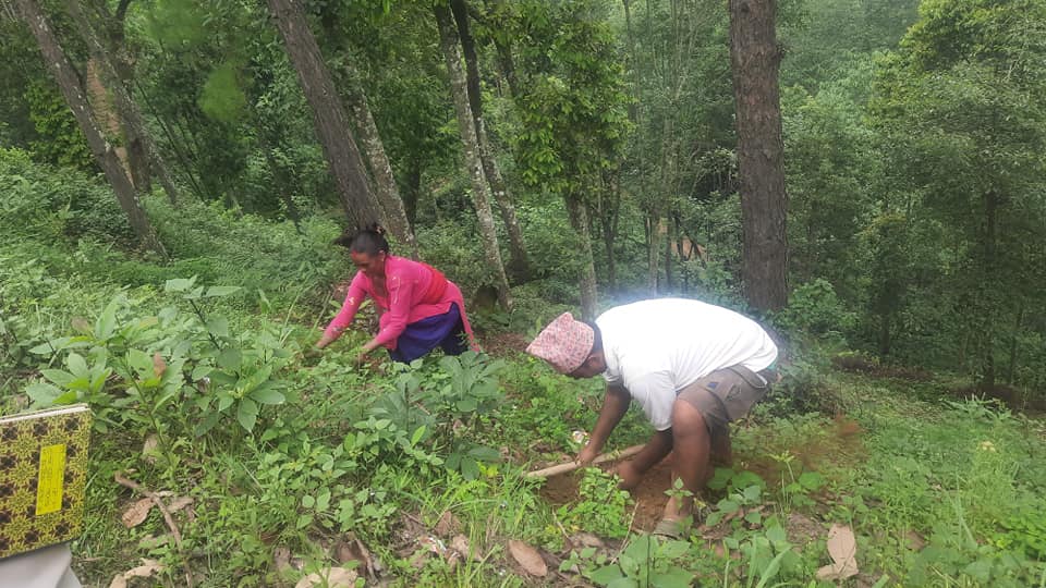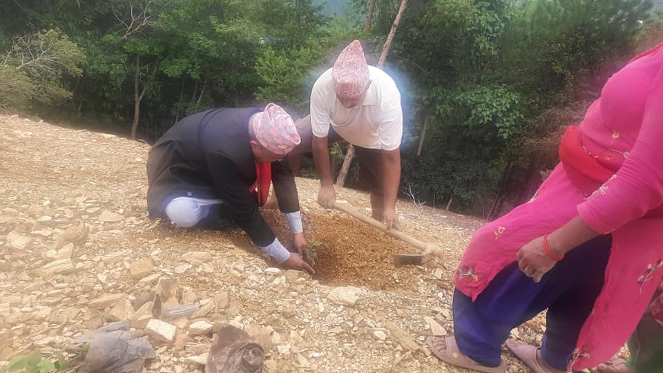 खनको देउराली सामुदायिक वनमा आईतबार वृक्षारोपण कार्यक्रम सम्पन्न भएको हो ।