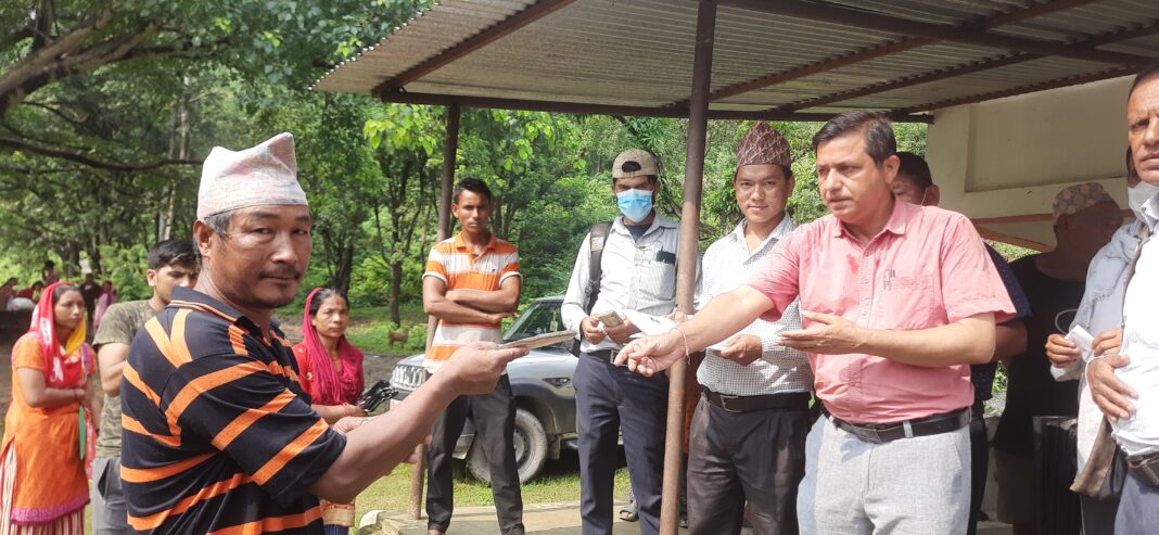 शितगंगा नगरपालिकाले गत बर्ष पहिरोमा परि पिडित बनेका वार्ड नम्बर ११ र १२ का स्थानियहरुलाई राहत स्वरुप नगद बितरण गरेको छ । नगर प्रमुख सुर्य प्रसाद अधिकारीले पुर्ण क्षति भएकाहरुलाई तत्काल राहत स्वरुप २५ हजार तथा आंसिक क्षति भएका हरुलाई प्रति परिवार रु १० हजार बितरण गर्नु भएको हो ।