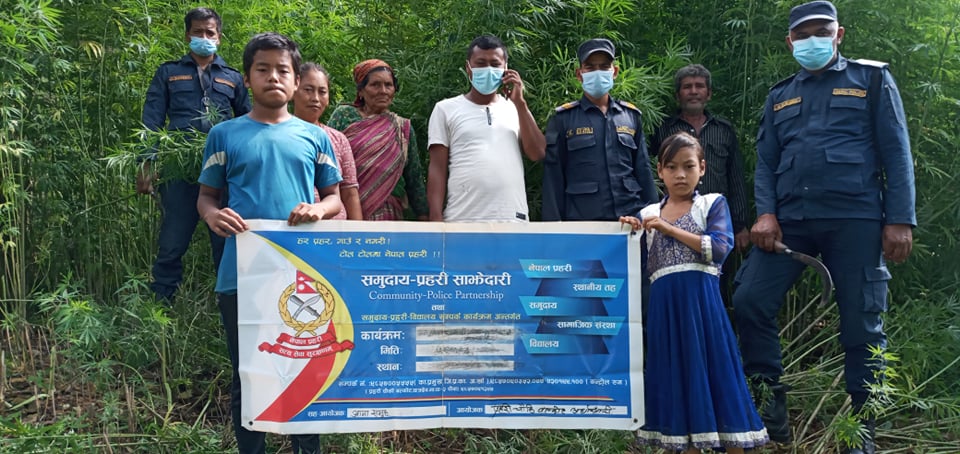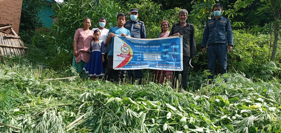 प्रहरी टोली र स्थानियबासी, समाजसेवी, बुद्धिजिबि, युवा तथा महिलाहरुको उपस्थितिमा आफै उम्रिएका अन्दाजी ८०० गाँजाका बोटहरु नष्ट गरिएको थियो ।