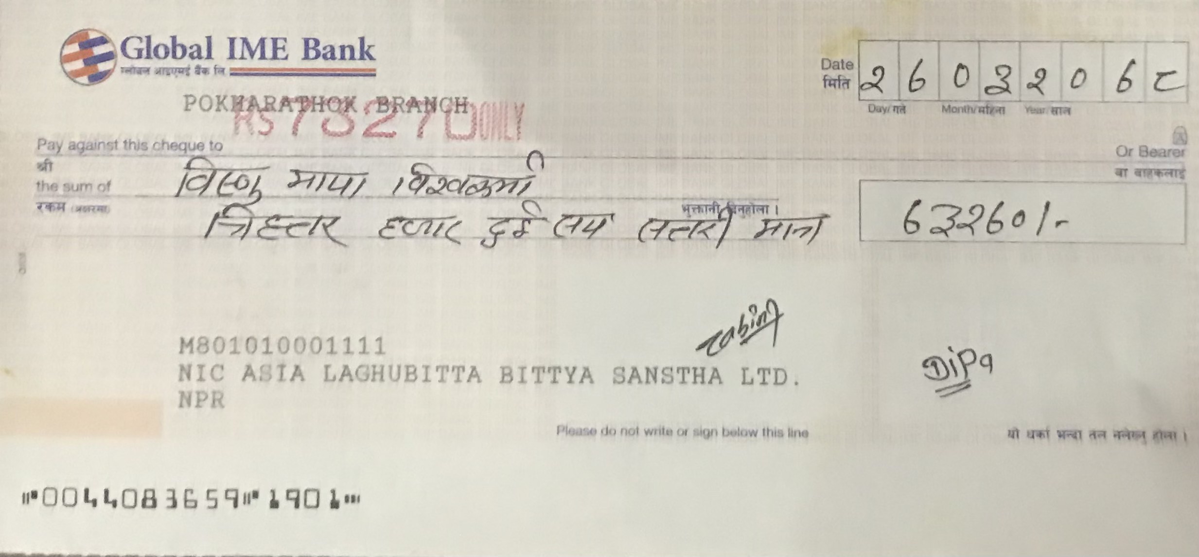 यस्तो विचलित अवस्थामा उहाको मृत्यु पश्चात संस्थाले पुरा ऋण विनाह गरीघर परिवारको लागी काजकिर्यार्थ त्रिहत्तर हज़ार दुई सय रुपैया ७० रक़म समेत प्रदान गरेको छ ।एक कार्यक्रमका विच दुर्गाविकको पत्नी विष्णुमाया विक र मृतकको वुवा रेनवहादुर विक लाई चेक हस्तान्तरण भएको छ  । ज्योति लाईफ़ इंश्योरेंस कम्पनीलिमिटेडका एरिया सेल्स मैनेजर कुशल भूसाल र एनआईसी एसिया लघुवित्तीयसंस्था लिमिटेड दुर्गाफाट शाखा प्रमुख नविन राउतले चेक हस्तांतरण गर्नु भएकोहो ।
