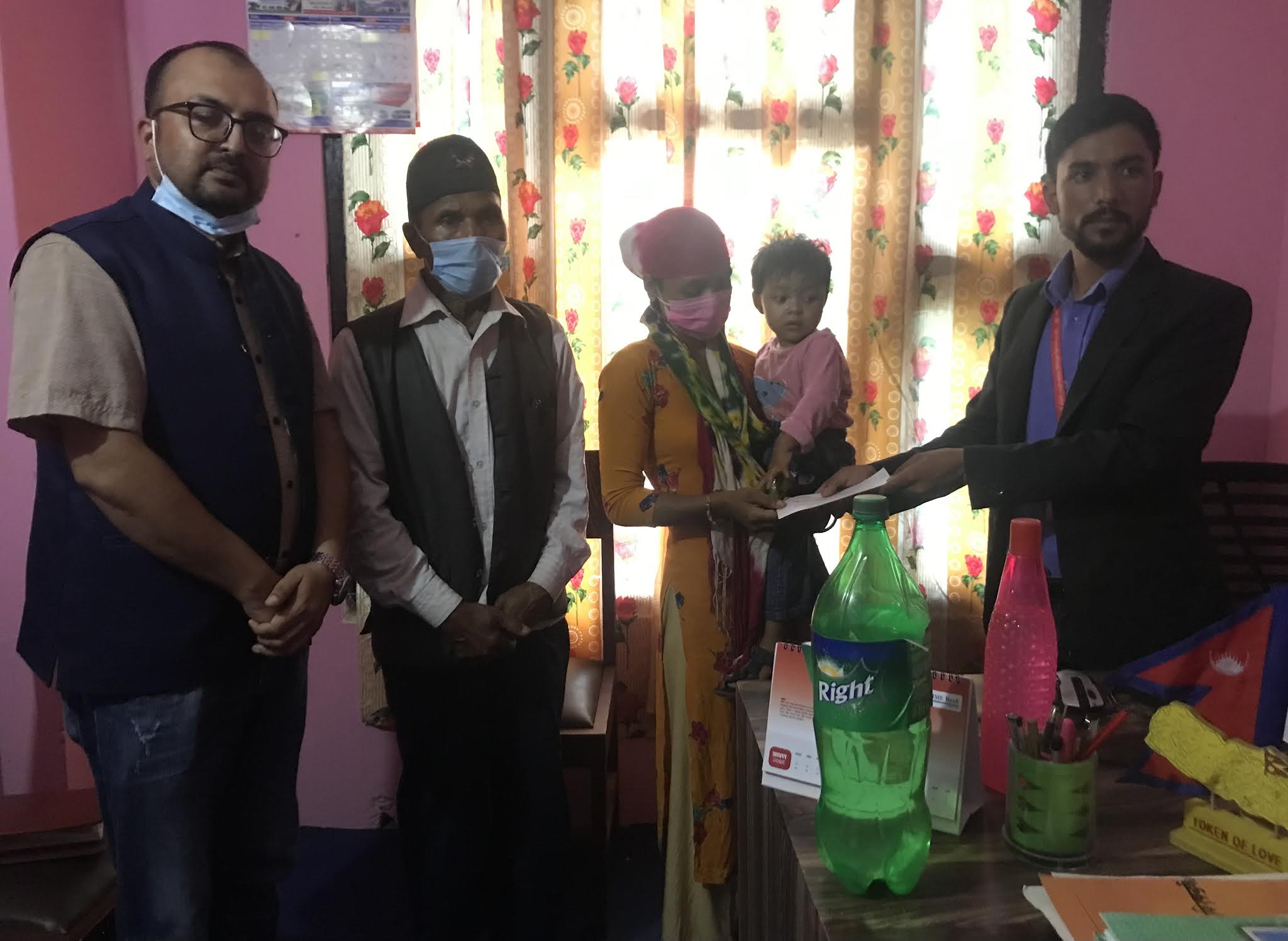 पाणिनी गाँउपालिकाको दुर्गाफाँटमा आयोजित कार्यक्रममा अर्घाखाँची डटकम समाचार सम्पादक, परराष्ट्र मामिला तथा व्युरो प्रमुख डिआरजी सुमन, एनआईसीएसिया लघुवित्तीय संस्था लिमिटेडका कार्यालय सहायक दिपाखनाल, प्रशिक्षार्थी एकादेव पौडेल, कल्पना रास्कोटी, सपना पोखरेलको उपस्थितिमा संस्थाको कार्यालयमै चेक हस्तान्तरण कार्यक्रम सम्पन्न भएको छ ।- तस्वीर डिआरजी सुमन/अर्घाखाँची ।