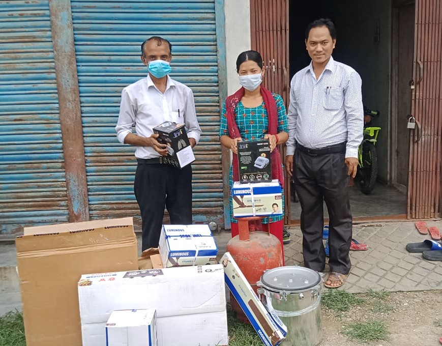 त्यस्तै खयरभट्टी स्वास्थ केन्दलाई स्टिलाइजेसन सेट १ वटा, नेबुलाइजर सेट १ वटा, फाेरसेव २ सेट, सिजर ४ वटा, किडनि ट्रे २ वटा, सिलिग पंखा २ वटा, ग्यास चुलाे १ सेट, दराज १ वटा वितरण गरिएको छ ।