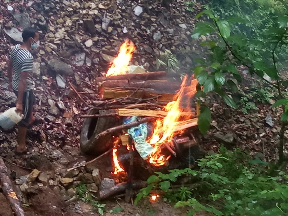 मंगलबार बिहान ३ र ४ घन्टा लगाएर शव निकालेर घरपरिवार, आफन्त, छिमेकी तथा मलामी सहित साउन ०५ गते शव गाढिएको नजिकैको खोलामा ल्याएर दाहसंस्कार गरियो । दुई तीन ठाउँ डुलाउँदै घरनजिकै ल्याएर शव गाड्नु पर्दा श्रीमानको आत्माले पनि शान्ति पाएको थिएन । हामीलाई पनि घर वरिपरि हिँड्डुल गर्दासमेत मानसिक पीडा भइरहेको थियो । अब त श्रीमानको आत्माले शान्ति पाउला नि । गहभरी आँसु ल्याउँदै श्रीमती तुलसा विकले भनिन् ।