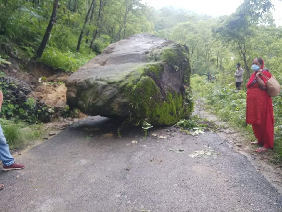 सडकखण्डको शितगंगा १२ सल्लेरीमा माथीबाट पहिरो सहित खसेको ठूलो ढुङ्गाले सडक अवरुद्ध भएको थियो ।
