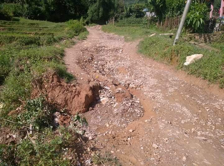 उक्त स्थानमा खाेल्साबाट आएकाे भलका कारण बाटाे बिग्रिएकाे देखिन्छ । साथै आफ्नाे व्याक्तिगत बाटाे लानकाे लागि नाली थुनिएकाे र उक्त नाली थुनिएकाे चासाे कुनै पनि जनप्रतिनिधि तथा स्थानीयले नलिएकाे गुनासाे उनिहरुको छ ।