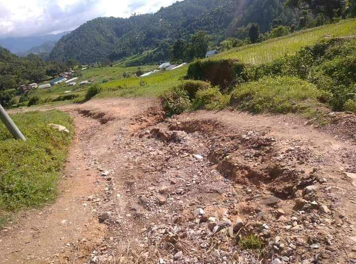 बर्षाका कारण गाडी त के मान्छे समेत हिडडुल गर्न अप्ठ्यारो पर्ने गरि बाटाे बिग्रिएकाे स्थानियबासीले बताए ।