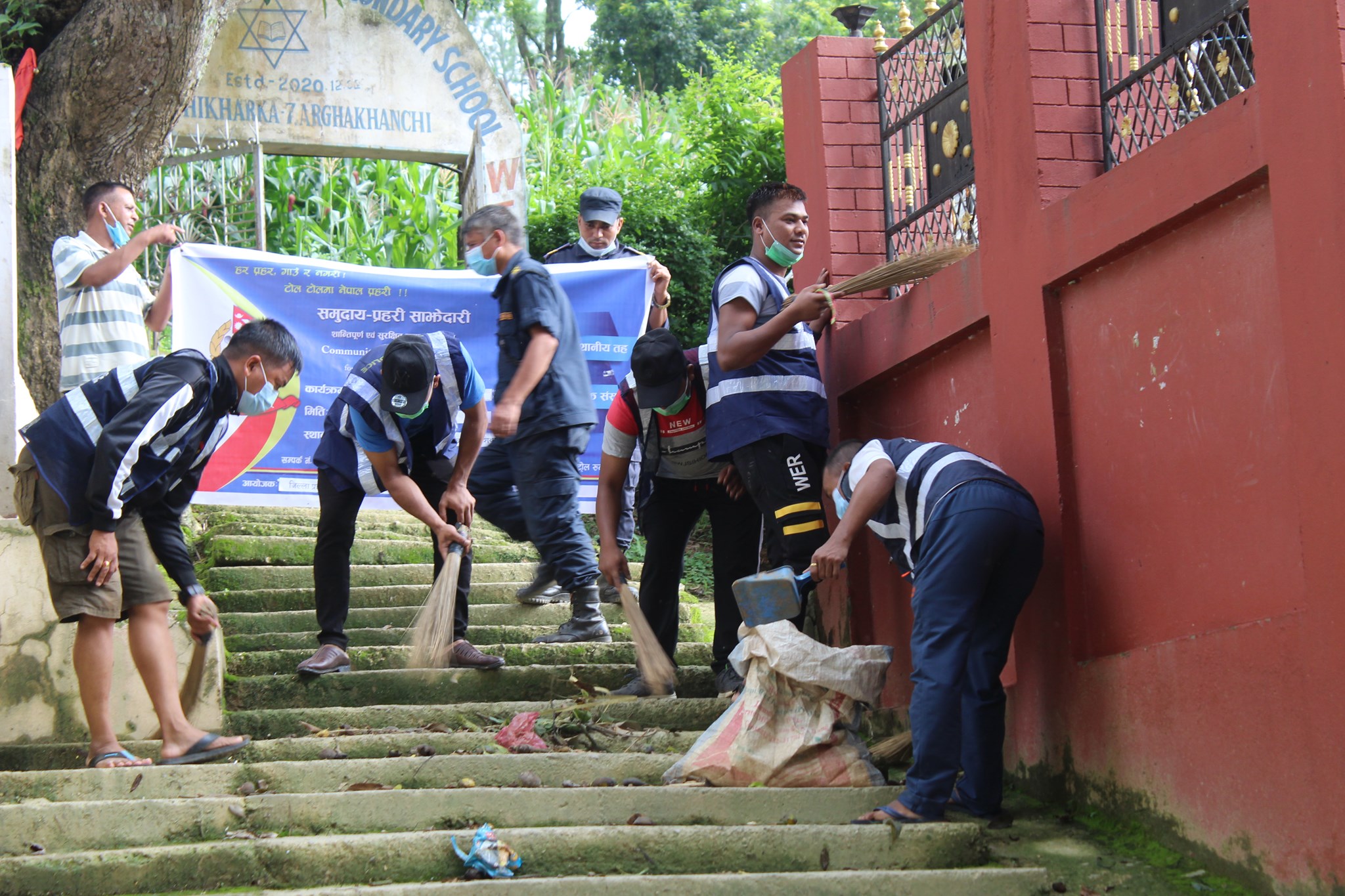 चुत्राबेसी, अर्घाखाँची (अर्घाखाँचीडट्कम) । अर्घाखाँची जिल्लाको सन्धिखर्क नगरपालिका वार्ड नम्बर २ चुत्राबेसीमा रहेको सिद्धेश्वर शिवालय मन्दिर परिसरमा प्रहरीको सरसफाई कार्यक्रम सम्पन्न भएको छ ।