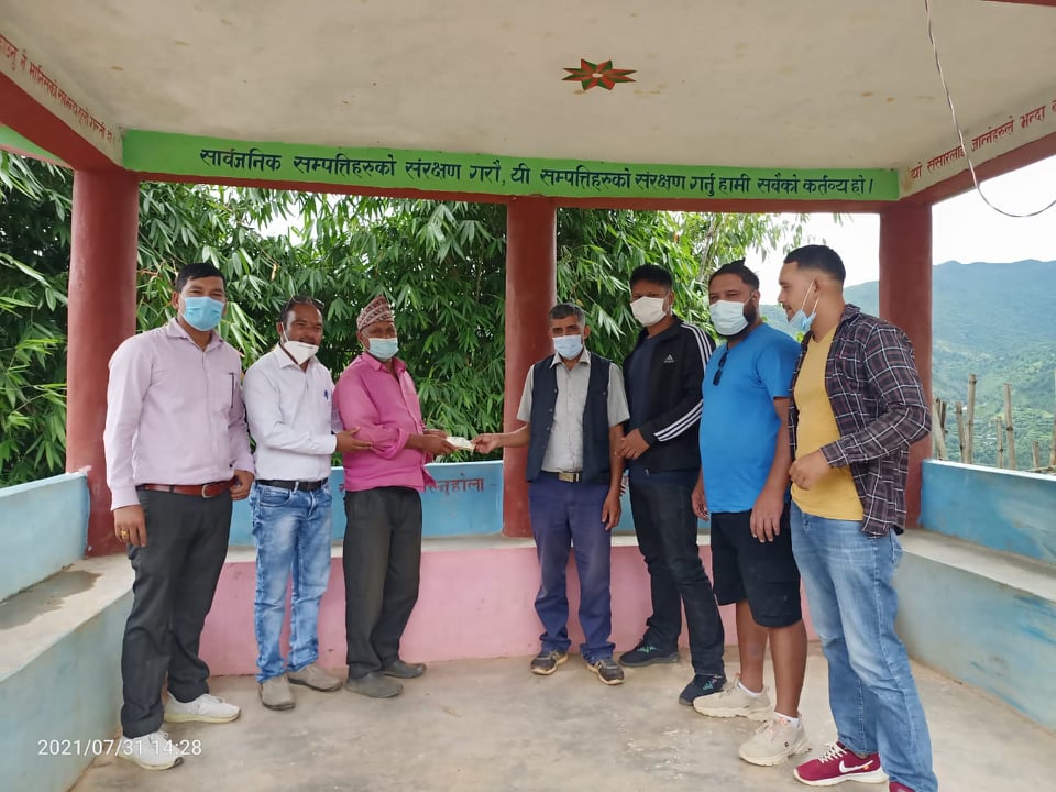 संस्थाका संरक्षक क्रान्ति सिंह र पुर्व सह कोषाध्यक्ष राज कुमार श्रेष्ठले आगोलागी पिडित खिम बहादुर चुदलिलाई स्थानीय मालारानी गाउँपालिका वडा ५ का अध्यक्ष शोभाखर भुसालको समउपस्थितिमा नेपाली रकम ४०,४०० ( चालिस हजार चारसय नेपाली उहानको रोबरमा २०७८। ०४। १६ दिन हस्तान्तरण गरिएको छ। उक्त राहत वितरण कार्यक्रममा स्थानीय हेनारी बस्नेत, बिनोद बस्नेत, सन्तोष बस्नेत, लगाएतको उपस्थिति रहेको थियो।