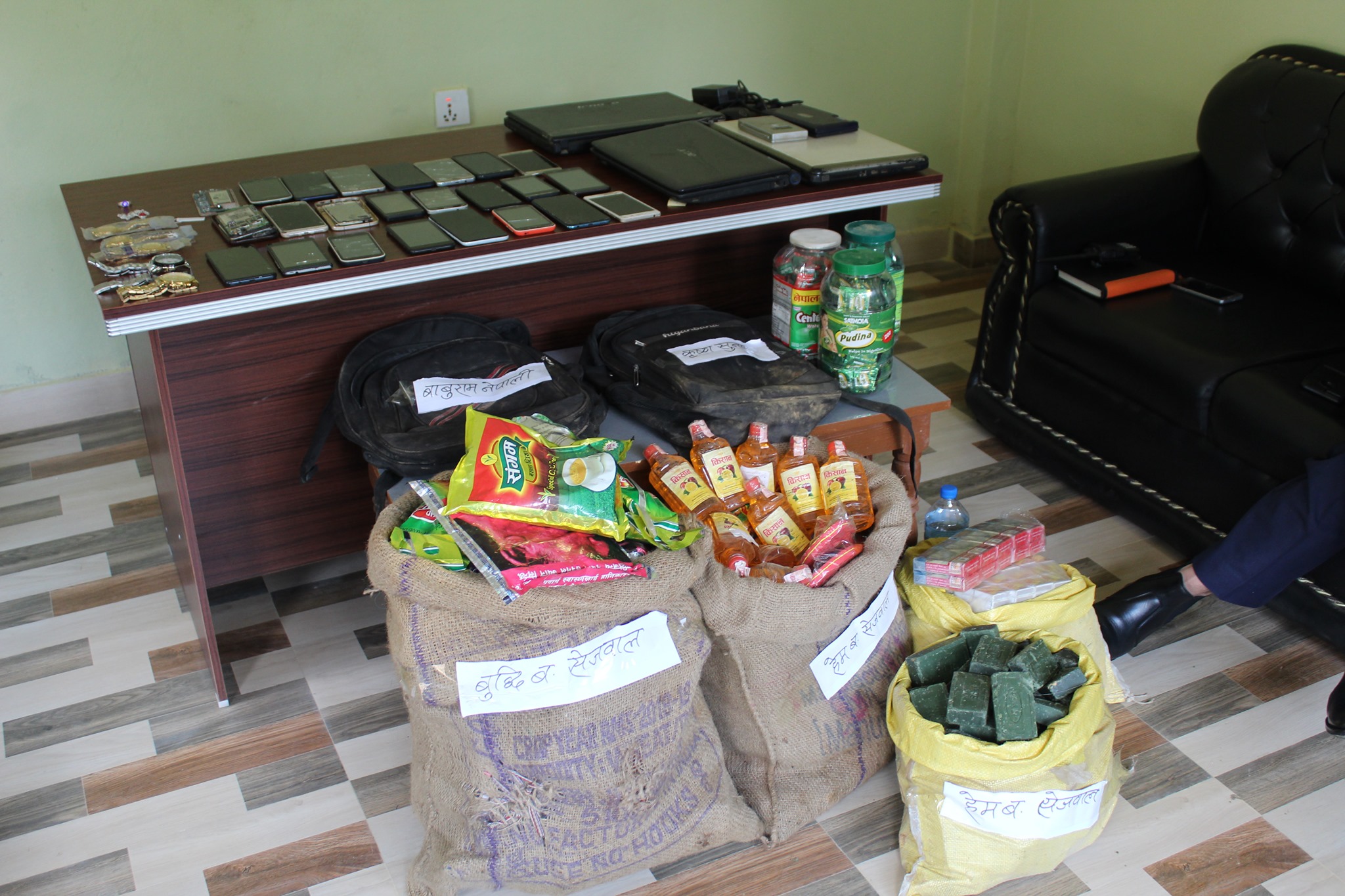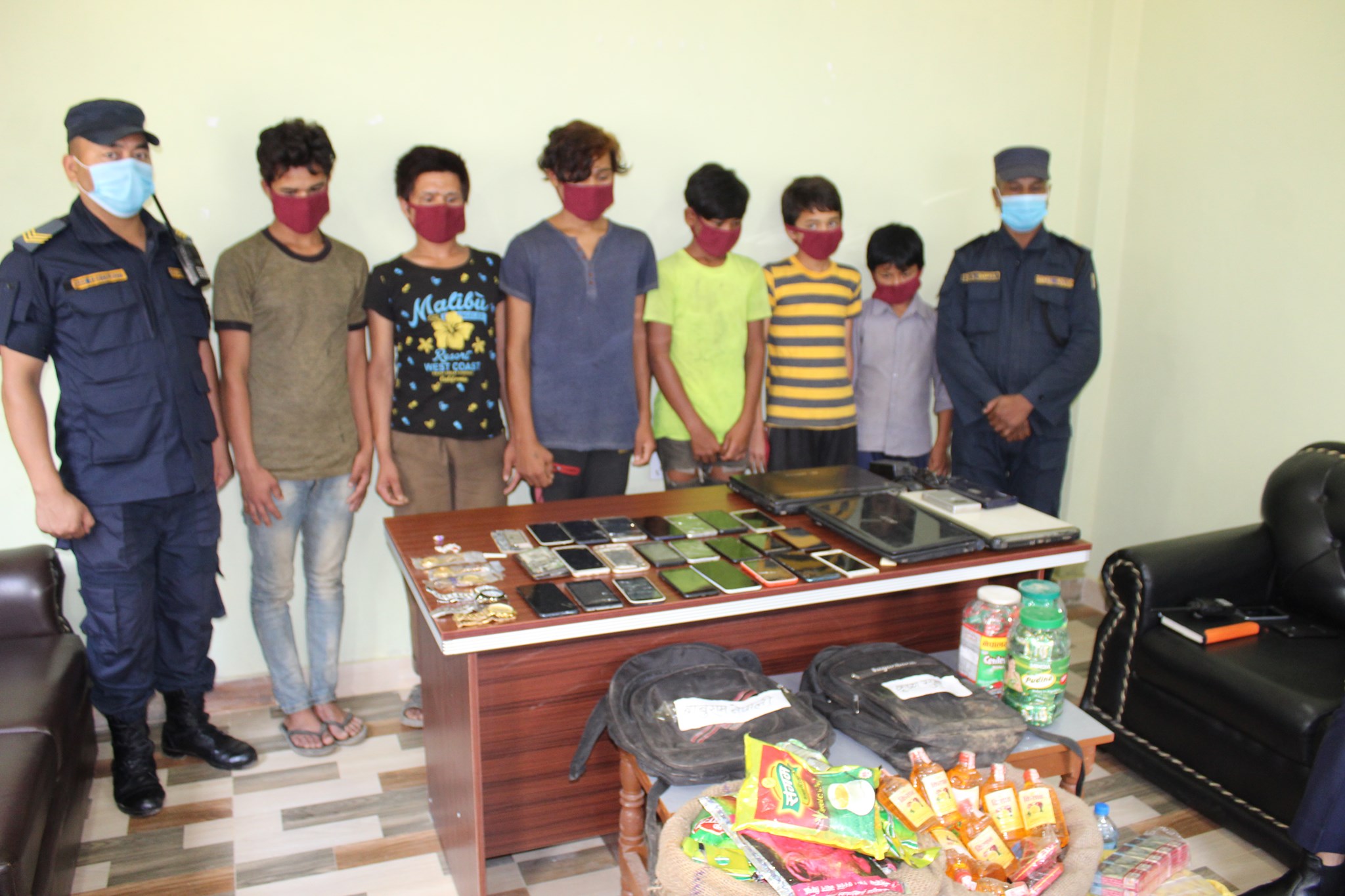 यस्तै चोरी भएको रिचार्ज कार्डको प्रयोग भएको मोबाईल नम्बरहरु पत्ता लगाई उक्त चोरीमा संलग्न चोर र चोरी भएका दशी सामानहरु डिभर्नाका २६ वर्षिय किशन नेपाली र १८ वर्षिय रोसन नेपालीको घरबाट बरामद गरी चोरीमा संलग्न रहेका ४ जना नावालक १७ वर्षिय १ जना, १५ वर्षिय १ जना, १३ वर्षिय १ जना, १२ वर्षिय १ जना सहित ६ जनालाई पक्राउ गरेको प्रहरीले बताएको छ ।