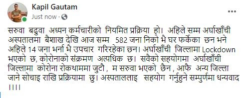यस्तै डा. गौतमले बुधवार सामाजिक सन्जालमा यस्तो लेखेका छन्;