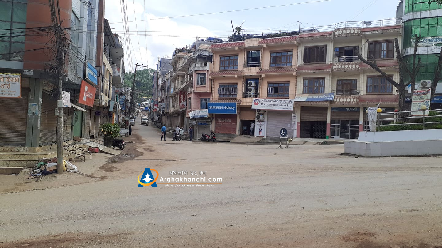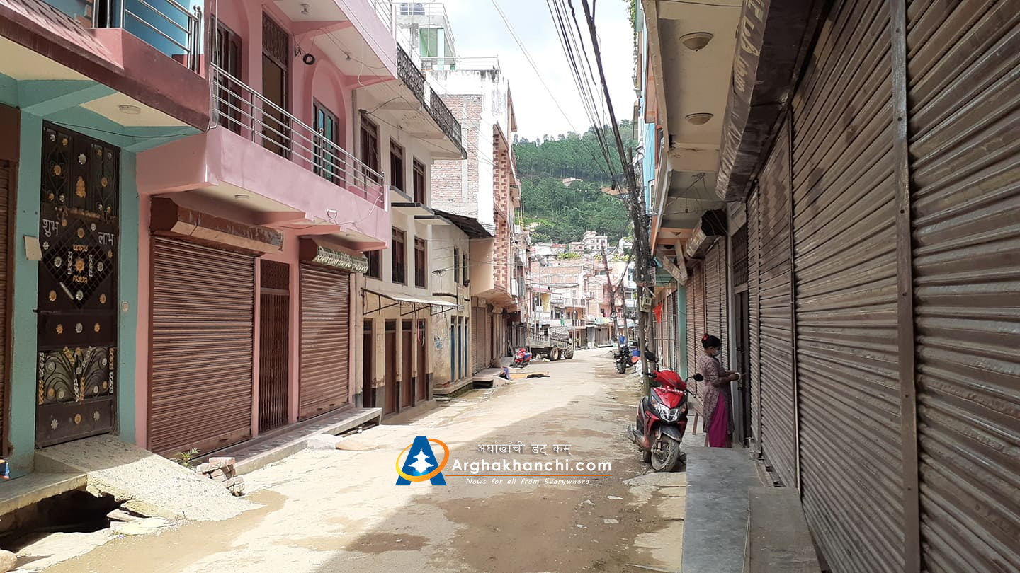 सन्धिखर्क, अर्घाखाँची (अर्घाखाँचीडट्कम) । अर्घाखाँची जिल्लामा १६ गते शनिबारदेखि भएको निषेधाज्ञाको प्रभावले अर्घाखाँची जिल्ला सुनसानजस्तै भएको छ। निषेधाज्ञाले भिडभाड नियन्त्रणमा आएपनि कोरोनाको ग्राफ भने दैनिक उकालो लाग्दै गएको छ। निषेधाज्ञा लगाइए पनि संक्रमण दरमा कमी आउन सकेको छैन।