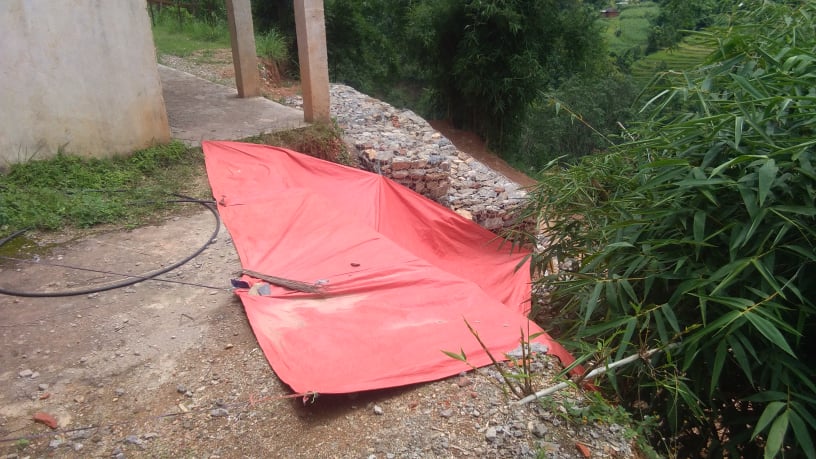 डिहिडाँडा, अर्घाखाँची (अर्घाखाँचीडट्कम) । अविरल वर्षाका कारण पहिरोको उच्च जोखिममा रहेको अर्घाखाँची जिल्लाको सन्धिखर्क नगरपालिका वार्ड नम्बर ७ खाँचीकोटको श्री चन्द्रप्रभा मावी डिहिडाँडाको भवनलाई जोगाउन ढुङ्गा जाली प्रयोग गरेर पर्खाल निर्माण गरिए पनि अझै प्लास्टिक त्रिपाल प्रयोग गर्नु पर्ने बाध्यता रहेको छ ।
