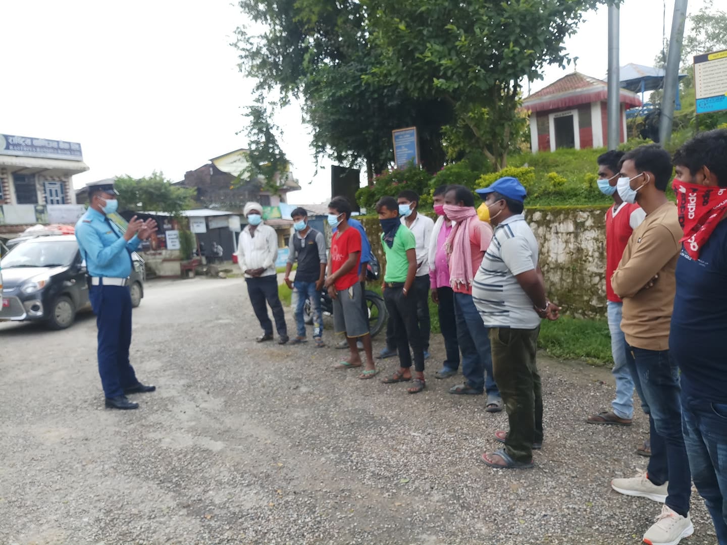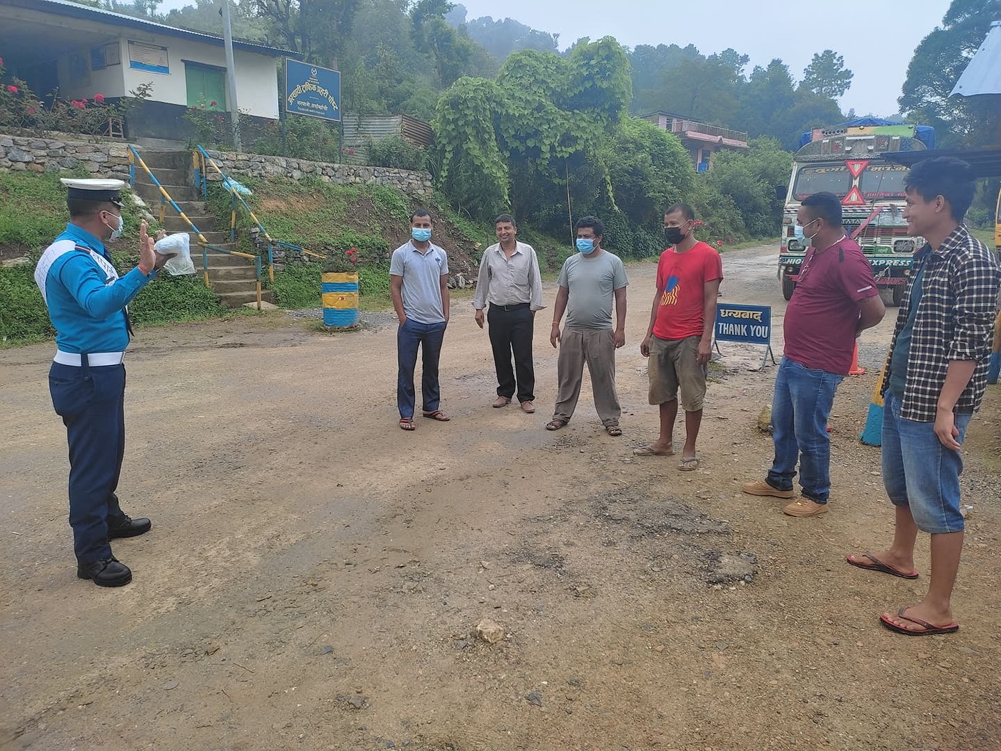 नरपानीमा अन्दाजी २५ जना र ठाडामा ३० जना चालक – सहचालक र यात्रुहरु गरी २ पटकमा ५५ जना सर्वसाधरणहरुलाई सडकमै जम्मा गरी हाल बिश्व महामारीको रुपमा फैलिएको कोरोना भाईरस कोभिड १९ बाट सुरक्षित हुने उपाए सम्बन्धि, दुर्घटना न्युनिकरणमा सर्बसाधरणहरुको दायित्व सम्बन्धमा प्रशिक्षण दिईएको थियो ।