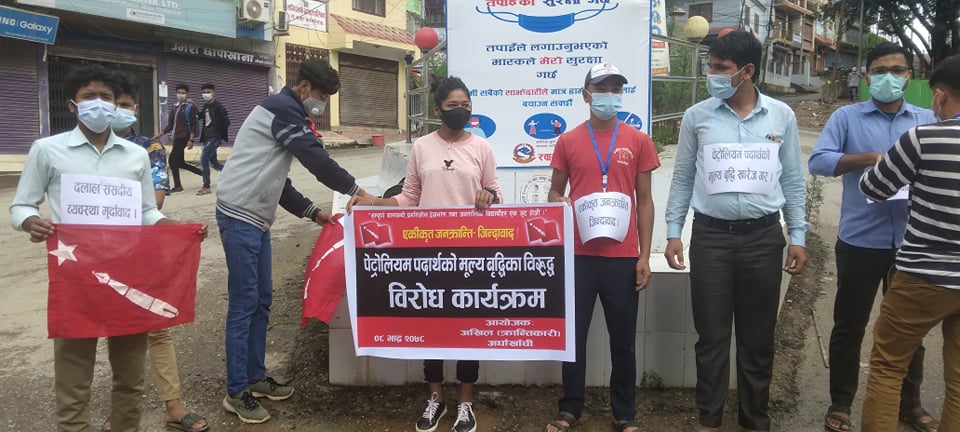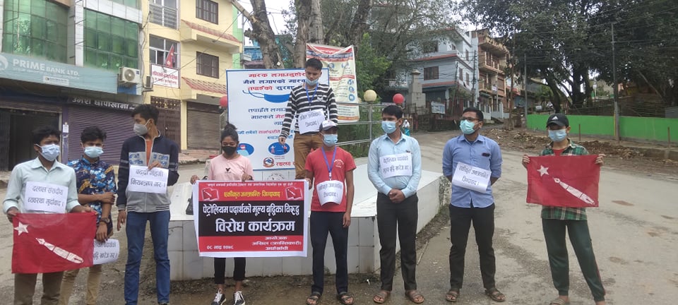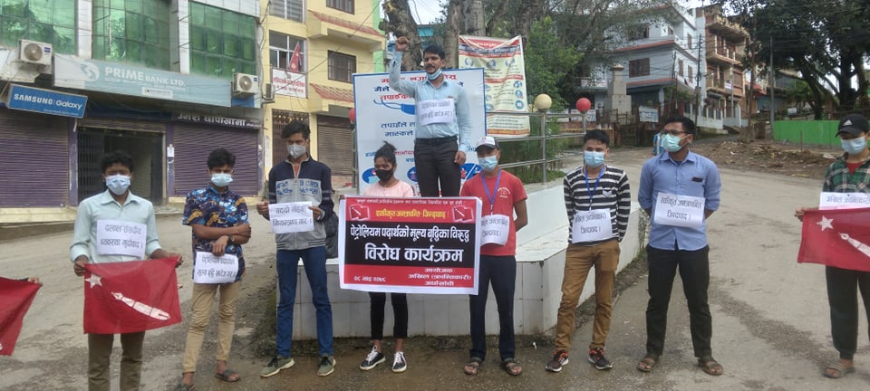 विराेध कार्यक्रमलाई सम्बाेधन गदै अखिल त्रान्तिकारिका जिल्ला ईन्चाजं नवीन खड्काले सरकारले प्रटाेलियम पदार्थमा गरेको मूल्य बृद्वि २४ घण्टा भित्र फिर्ता नलिए कडा मूल्य चुकाउनु पनें बताउदै सरकारले छिटोभन्दा छिटो कदम फितां लिएर आफ्ना गतिविधि अगाडि बढाउनकाे लागि आग्रह गरे ।