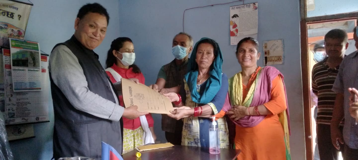 वार्ड अध्यक्ष प्रितम बहादुर थापा र अभिकर्ता मधु क्षेत्री र सन नेपाल लाइफ इन्स्योरेन्स कम्पनीका अर्घाखाँची प्रमुख मिना बस्यालले चेक रकम हस्तान्तरण गर्नु भएको हाे ।