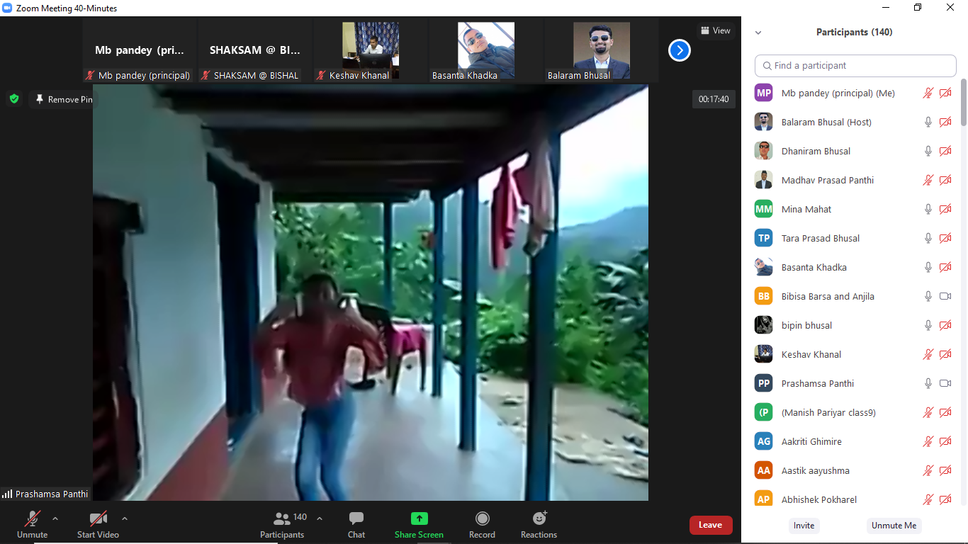 कार्यक्रम बोल्दै विद्यालयका सहायक प्र.अ. तथा अतिरिक्त क्रियाकलापका सयोजक तारा प्रसाद भुसालले अतिरिक्त कार्यक्रमका नियम हरु उल्लेख गर्नु भएको थियो भने सहायक प्र.अ माधब प्रसाद पन्थीले शुभकामना मन्तव्य व्यक्त गर्दै कार्यक्रममा सहभागी सबैलाई शुभकामना व्यक्त गर्दै अतिरिक्त कार्यक्रमको महत्व बारे उल्लेख गर्नुभएको थियो ।