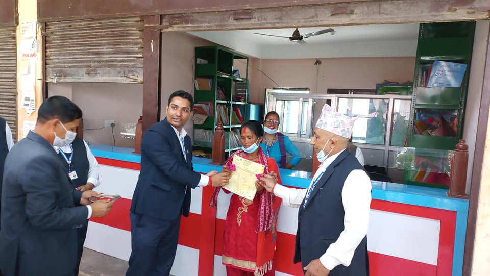 पहिलाे सेवाग्राही कुमाललाई प्रमुख प्रशासकीय अधिकृत नारायण अर्यालले टीका तथा खादाबाट सम्मान गर्नु भएको हो ।