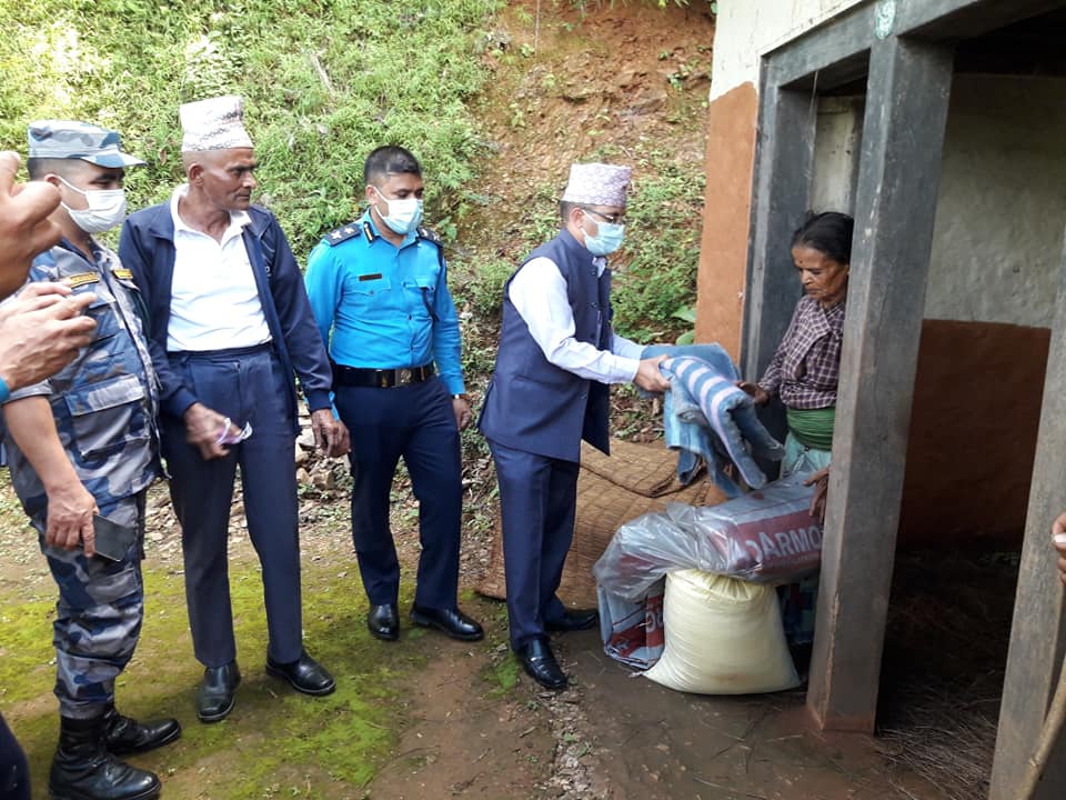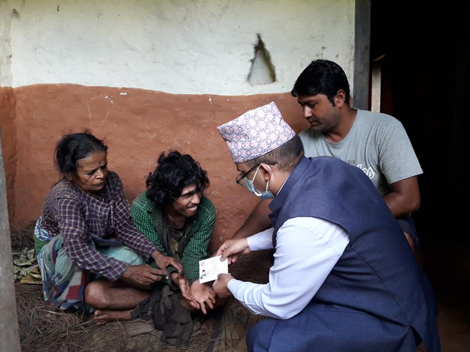 जिल्ला प्रमुख जिल्ला अधिकारी बिष्णु पौडेलले असुरकोटका २७ वर्षिय मानसिक पीडित केशव बन्जाडेलाई उनैको घरमा पुगि नेपाली नागरिकताको प्रमाणपत्र बितरण गर्नुका साथै केही खाध्य तथा राहत सामाग्री पीडितकी आमा सुमित्रा बन्जाडेलाई हस्तान्तरण गर्नु भएको हो ।