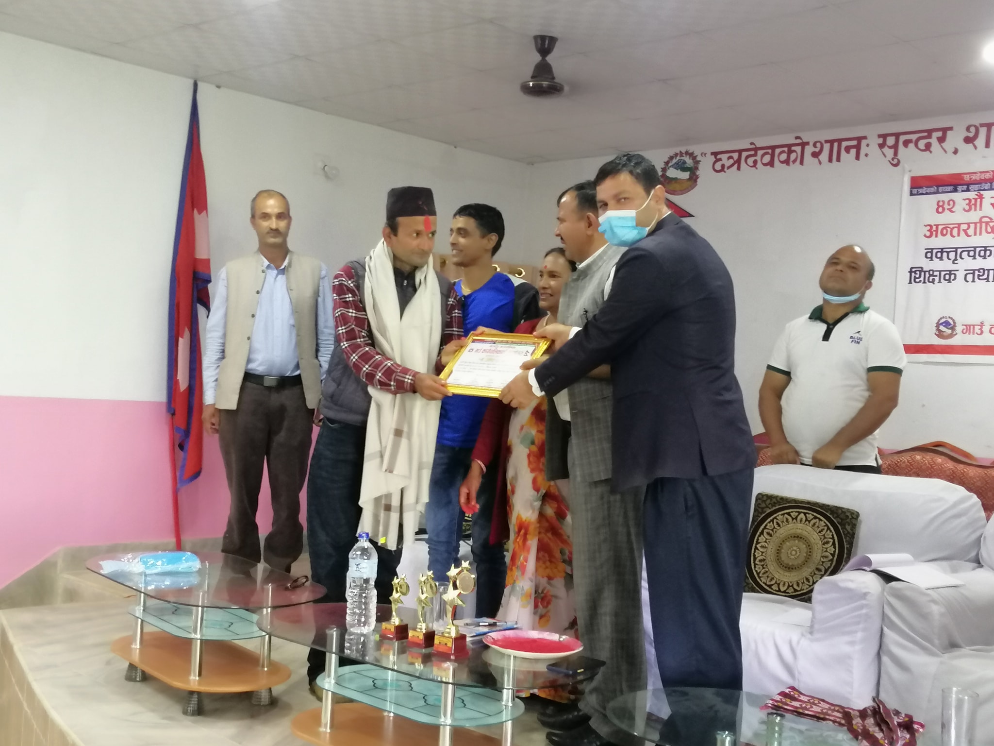 छत्रदेव गाउँपालिकाले आयोजना गरेको “कोभिड -१९ र शिक्षामा यसको प्रभाव” विषयमा माद्यामिक तह वक्तृत्वकला प्रतियोगिता एवं शैक्षीक सत्र २०७७ मा शिक्षक सेवावाट निवृत हुनुभएका शिक्षकहरुलाई सम्मान तथा शैक्षीक सत्र २०७७ मा आधारभूत तह एसईई कक्षा १२ मा उत्कृष्ट अङ्गक ल्याउने विद्यार्थी र विद्यालयलाई सम्मान कार्यक्रम गरि मनाईयो हो ।