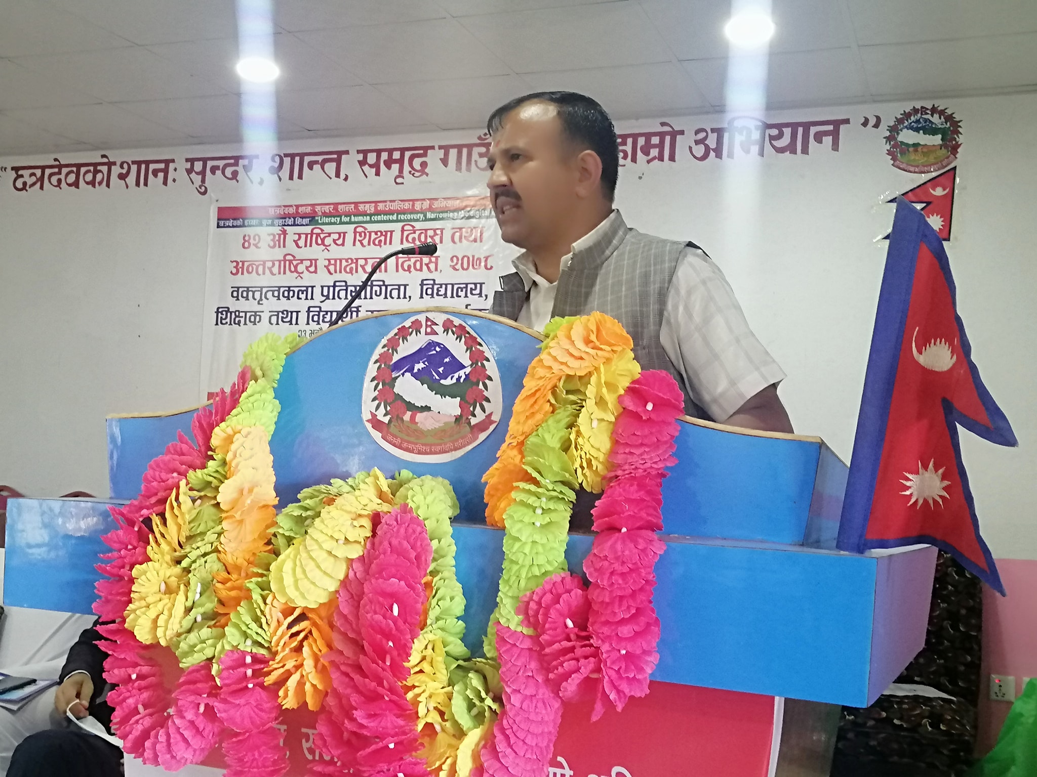 छत्रदेव, अर्घाखाँची (अर्घाखाँचीडट्कम) । अर्घाखाँची जिल्लाकाे छत्रदेव गाँउपालिकामा ४२ औ शिक्षा दिवस एवं अन्तराष्ट्रिय साक्षारता दिवसको अबसरमा “कोभिड -१९ र शिक्षामा यसको प्रभाव” विषयमा माद्यामिक तह वक्तृत्वकला प्रतियोगिता तथा सम्मान कार्यक्रम सम्पन्न भएको छ ।