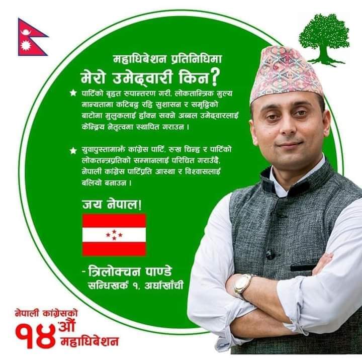 नेपाली कांग्रेसका युवा नेता त्रिलोचन पाण्डेले महाधिवेशन प्रतिनिधिमा उम्मेदवारी दिने भएका हुन् ।