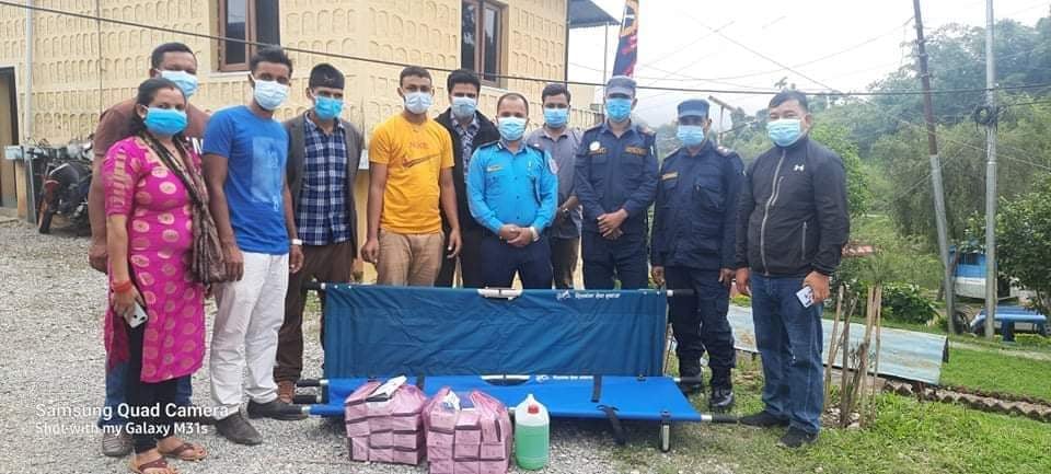 ठाडामा इलाका प्रहरी कार्यालयलाई शितगंगा सेवा समाजद्धारा स्टेचर तथा मास्क सेनिटाइजर हस्तान्तरण