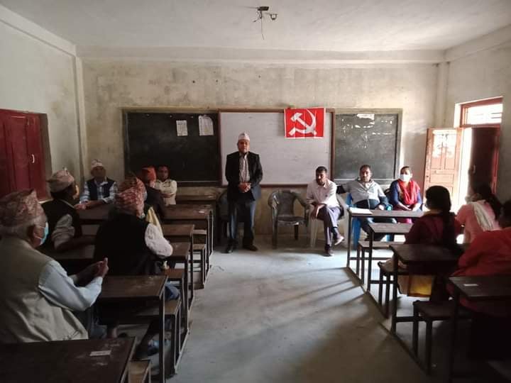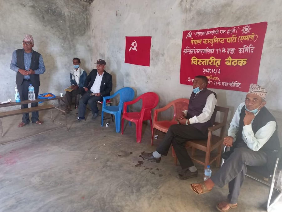 कमिटीकाे बैठक वडा कमिटी अध्यक्ष क. खिमानन्द खनालकाे अध्यक्षता जिल्ला कमिटि सचिवालय सदस्य कार्यालय सचिव लिल बहादुर बि.क., जिल्ला कमिटी सचिवालय सदस्य, ४ नं. वडा ईन्चार्ज गंगाराम खनाल, सहईन्चार्ज वडाअध्यक्ष बिष्णुप्रसाद पाेख्रेल, सचिवालय सदस्य , बिष्णु बि.क., राधा खनाल, रामजी शर्मा लगायतकाे उपस्थिति रहेको थियो ।