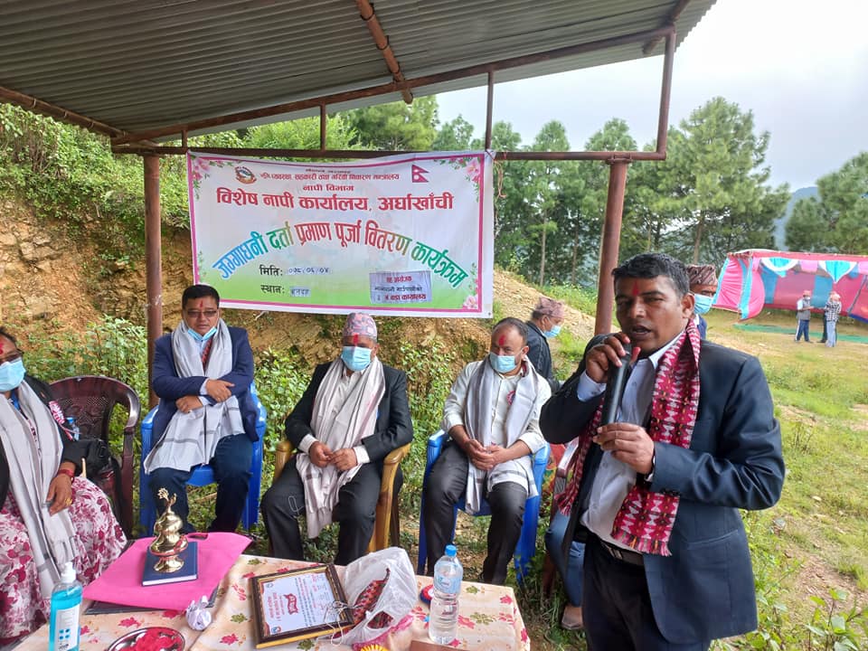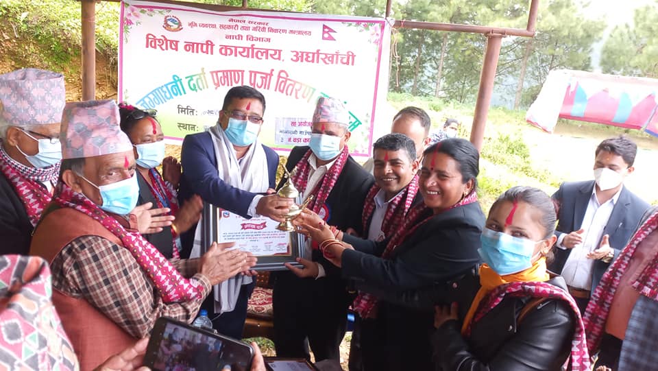खनदह र हंसपुरमा बिषेश नापी कार्यलय अर्घाखाँची जग्गाधनी दर्ता प्रमाण पुर्जा बितरण कार्यक्रम सम्पन्न भएको हो ।