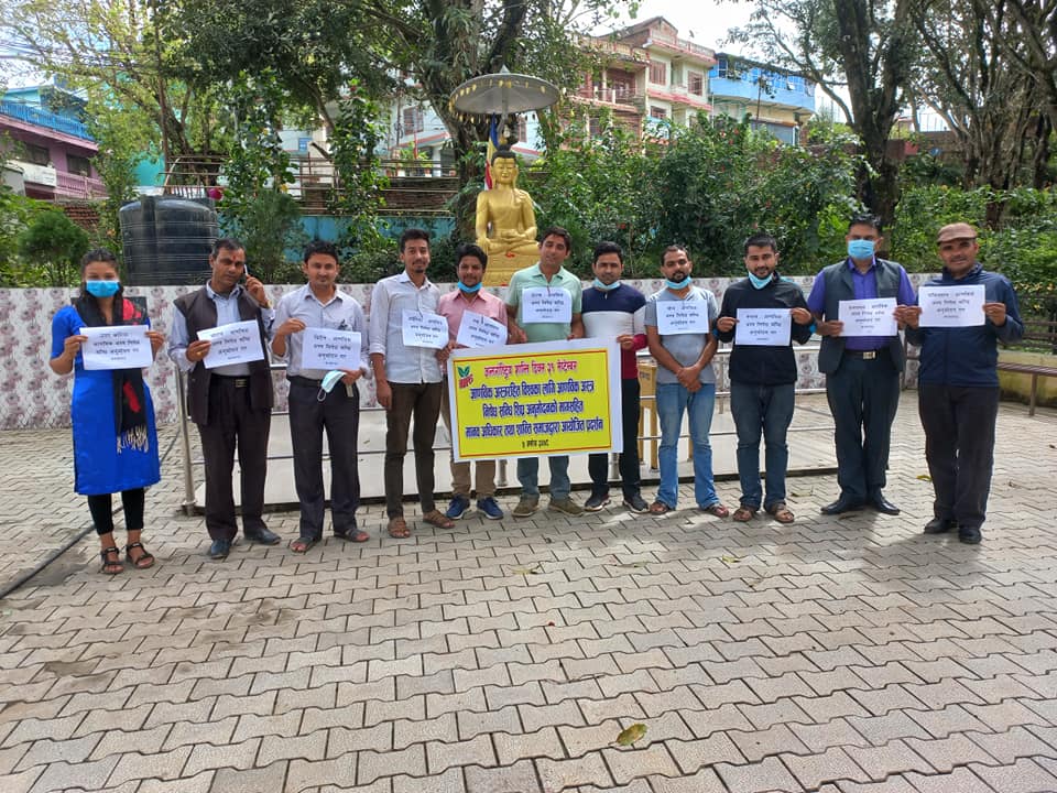 अधिकारकर्मीहरुले युद्ध रोकौ, शान्ति प्रवद्घन गरौँ, युद्धमा सबैको क्षय हुन्छ, शान्तिमा सबैको जय हुन्छ,युद्ध निषेध, शान्ति विशेष, आणविक अस्त्र चाहिँदैन,शान्ति मास्न पाईदैन लगायतका प्ले कार्ड सहित सडकमा प्रदर्शन गरेका थिए ।