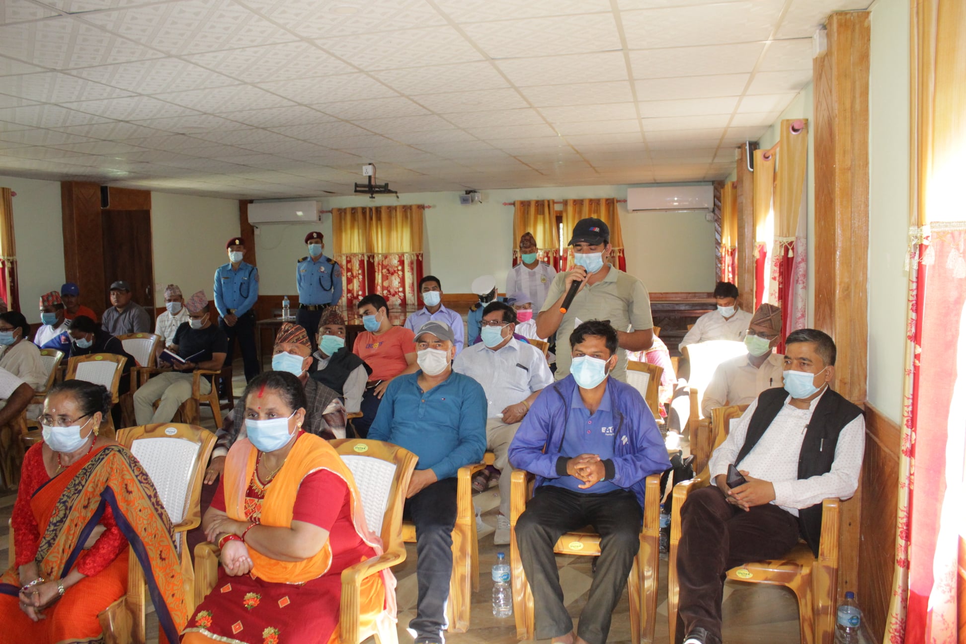 प्रमुख जिल्ला अधिकारी बिष्णु पौडेलको प्रमुख आतिथ्यतामा सम्पन्न कार्यक्रममा शसस्त्र प्रहरी बल ३६ न. का गुल्मपती रामकृष्ण महर्जन ,अनुसन्धान प्रमुख बिनय चर्तुबेदी ,सन्धिखर्क नगरपालिका वार्ड न.१ का वार्ड अध्यक्ष युबराज बन्जाडे वडा न. २ का वार्ड अध्यक्ष मोतिजङ रायमाझी उधोग बाणिज्य संघका अध्यक्ष युबराज श्रेष्ठ  सामुदायिक प्रहरी केन्द्रका अध्यक्ष राम बहादुर चौहान जिल्ला  रेड्क्रसका  सभापति कुशल भुसाल जिल्ला स्थित  चेम्बरअफ कमर्श यातायात ब्याबसायी विभिन्न संघ संस्थाका प्रमुख  प्रतिनिधि संचारकर्मी लगायतको    उपस्थित रहेको थियो ।