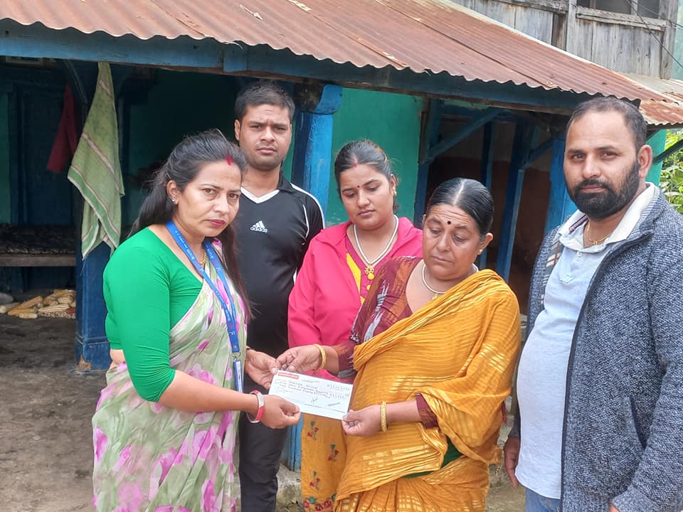 सन्धिखर्क ८ का वडाअध्यक्ष समेत रहनु भएका इश्वरी प्रसाद भुसालकाे मृत्यु भएपछि उहाँको घरमै पुगेर उहाँकि श्रीमती जयकला भुसाललाई ९ लाख ५७ हजार ९ सय २५ रुपैयाँ सन् नेपाल लाइफ इन्स्योरेन्स कम्पनीका शाखा प्रबन्धक मिना बस्यालले चेक हस्तान्तरण गर्नु भएको हाे ।