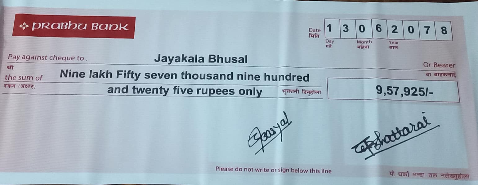 उहाँले ३ किस्ताकाे विमा शुल्क रकम २ लाख ३३ हजार १ सय ९२ रुपैयाँ मात्र कम्पनीमा बुझाउनु भएको थियोे । अभिकर्ता तिलका भुसालले स्वर्गीय इश्वसी प्रसाद भुसालको विमा गराउनु भएको थियोे ।