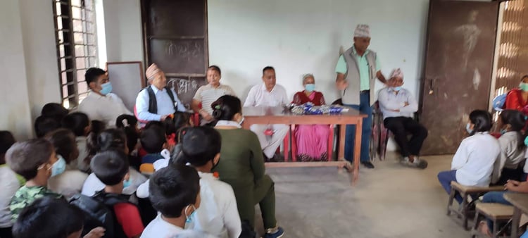 अक्षयकोषदाता स्व. बुद्धि रायमाझीकी जीवन सङ्गिनी विजुला रायमाझी, वडाध्यक्ष मोतिजङ्ग रायमाझी, विद्यालय व्यवस्थापन समिति अध्यक्ष  मुकुन्दराज आचार्यको उपस्थितिमा भगवती मावीको छात्रवृत्ति वितरण कार्यक्रम सम्पन्न भएको थियो ।