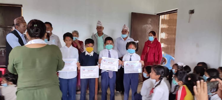 सन्धिखर्कको श्री भगवती मावीमा बुद्धि रायमाझी छात्रवृत्ति अक्षयकोषद्धारा जेहेन्दार विद्यार्थीलाई सम्मान