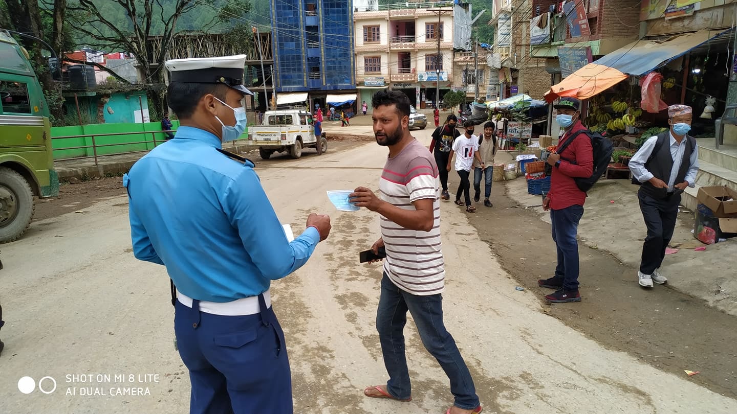 जिल्ला कार्यालय तथा मातहतका प्रहरी ईकाईहरुबाट आ-आफ्नो जिम्मेवारी क्षेत्रमा रहेका बजार ईलाकामा अनिमानित ६०० पिस मास्क वितरण गरिएको छ ।