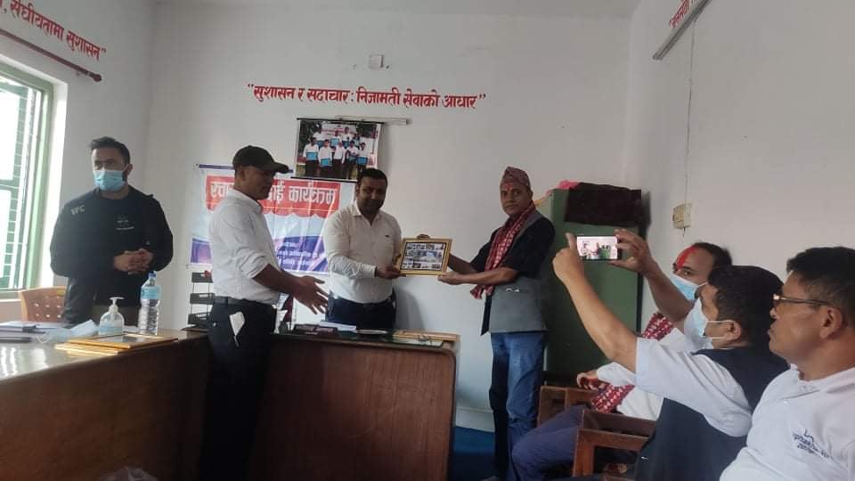 कार्यक्रममा नेपाल  निजामती कर्मचारी युनियनका प्रदेश उपाध्यक्ष माया घिमिरे जिल्ला उपाध्यक्ष माधब अर्याल निजामती कर्मचारी संगठनका सचिब दिलिप केसी निजामती कर्मचारी युनियनका सचिब रबि अर्याल पत्रकार सुर्य प्रसाद भुसालले  स्वागत तथा विदाई गर्नु भएको थियोे ।