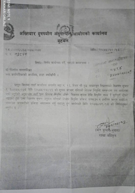 पहिले पनि आफ्नी श्रीमतिलाई अबैध रुपमा सिमलपानीको श्री बुद्ध आधारभुत बिद्यालय देउरालीमा जागिर खुवाएको तर पछि उच्च अदालत बुटवलको आदेशपछि श्रीमति जागिर गुमेको थियो । त्यसरी श्रीमतिको जागिर गुमेपछि अहिले विद्यालयलाई पनि राजनितिको अखडा बनाएको खुल्न आएको हो ।