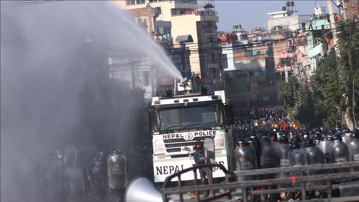 दुर्गा प्रसाईंका कार्यकर्ताले प्रहरीमाथि ढुंगा प्रहार गरेपछि प्रहरीले अश्रुग्यास र पानीको फोहोरा प्रयोग गरेको छ ।