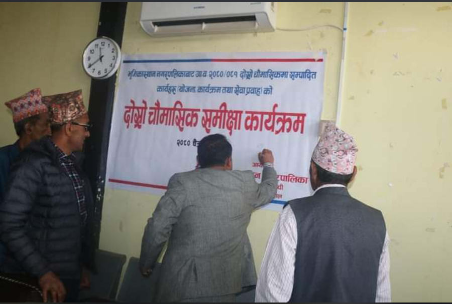 भुमिकास्थान नगरपालिकाको दोस्रो चौमासिक समिक्षा सम्पन्न , बैशाख भित्र योजना सक्ने : नगर प्रमुख थापा