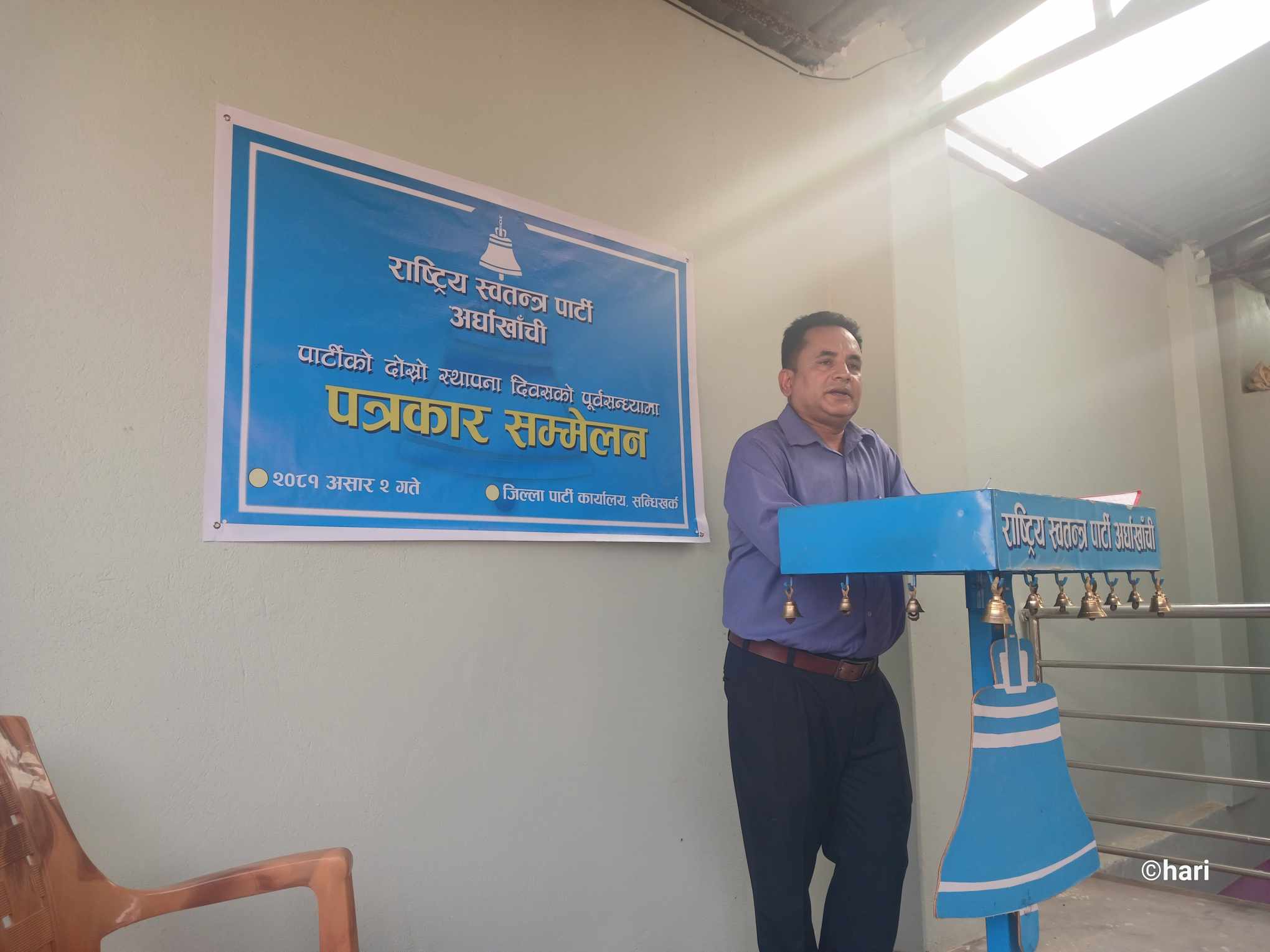२०७९ असार ७ गतेका दिन जन्मिएको राष्ट्रिय स्वतन्त्र पार्टीले आफ्नो दोस्रो वार्षिकोत्सव देशभर उत्साहका साथ मनाउदै छ । स्थापना दिवसको अवसरमा हामीले पनि अर्घाखाँची जिल्लामा विभिन्न कार्यक्रमहरु तय गरेका छौं । सोही काार्यक्रमको विषयमा जानकारी दिन यो पत्रकार सम्मेलनको आयोजना गरिएको हो ।