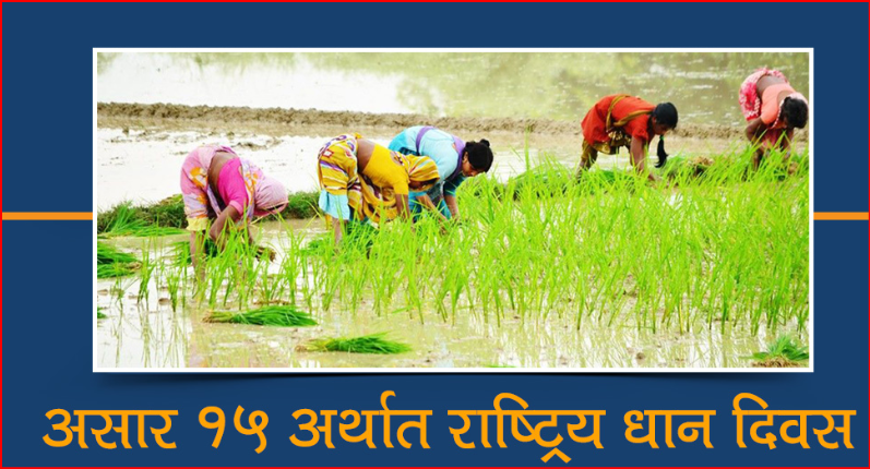 कृषि प्रधान देश भएकाले नेपालका अधिकांश नागरिकको पेसा खेतीपाती हो। त्यसैले धान दिवस आज खेतमा काम गर्दै दही चिउरा खाएर मनाइँदै छ। किसान वर्षभरका लागि छाक जुटाउन यो महिना खेतीमा व्यस्त हुन्छन्। आजका दिन असारे भाकामा लोकदोहोरी गाउँदै छुपुछुपु हिलोमा धान रोपिन्छ।