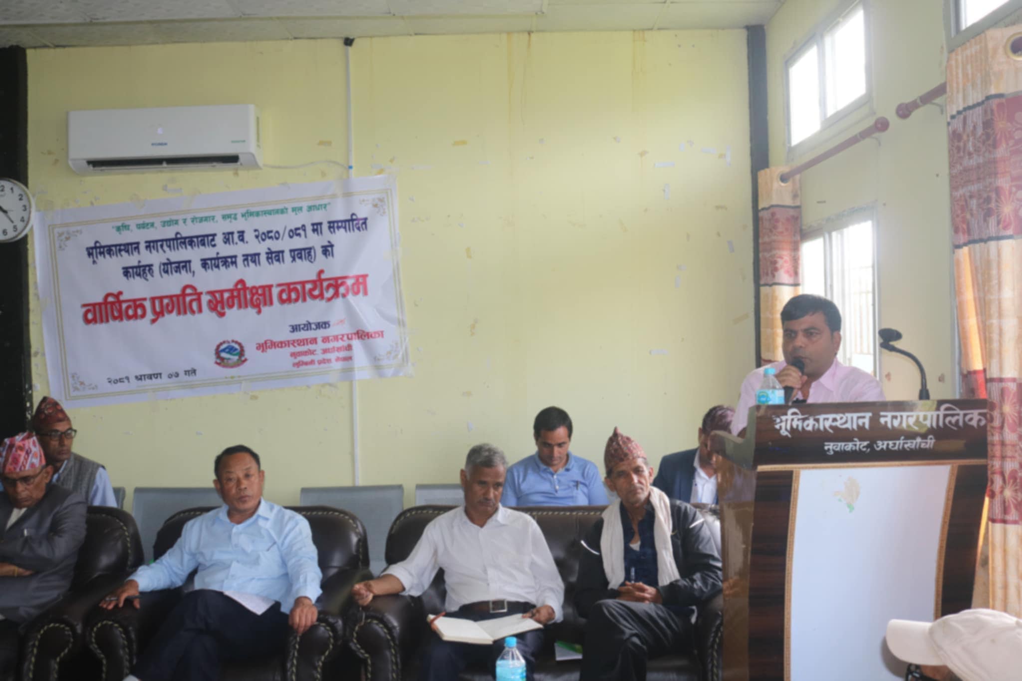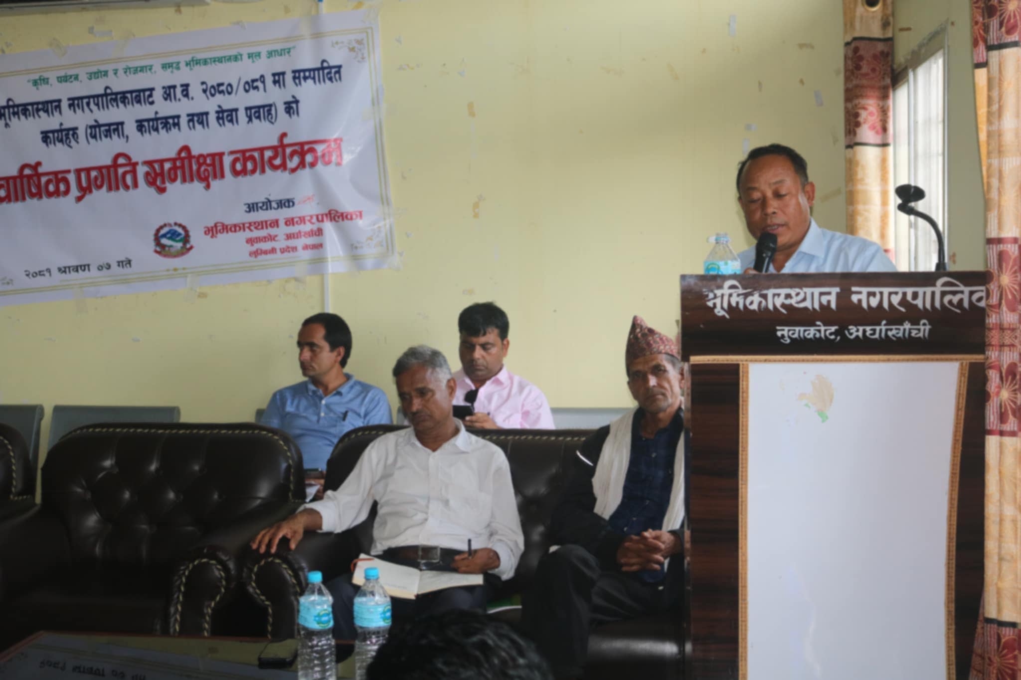 अर्घाखाँची l भुमिकास्थान नगरपालिकाको आर्थिक बर्ष २०८०/८१ मा सम्पादित कार्यहरु योजना, कार्यक्रम तथा सेबा प्रबाहको बार्षिक प्रगति समिक्षा कार्यक्रम भुमिकास्थान नगरपालिकाको कार्यालय नुवाकोटमा सम्पन्न सोमबार सम्पन्न भएको छ ।