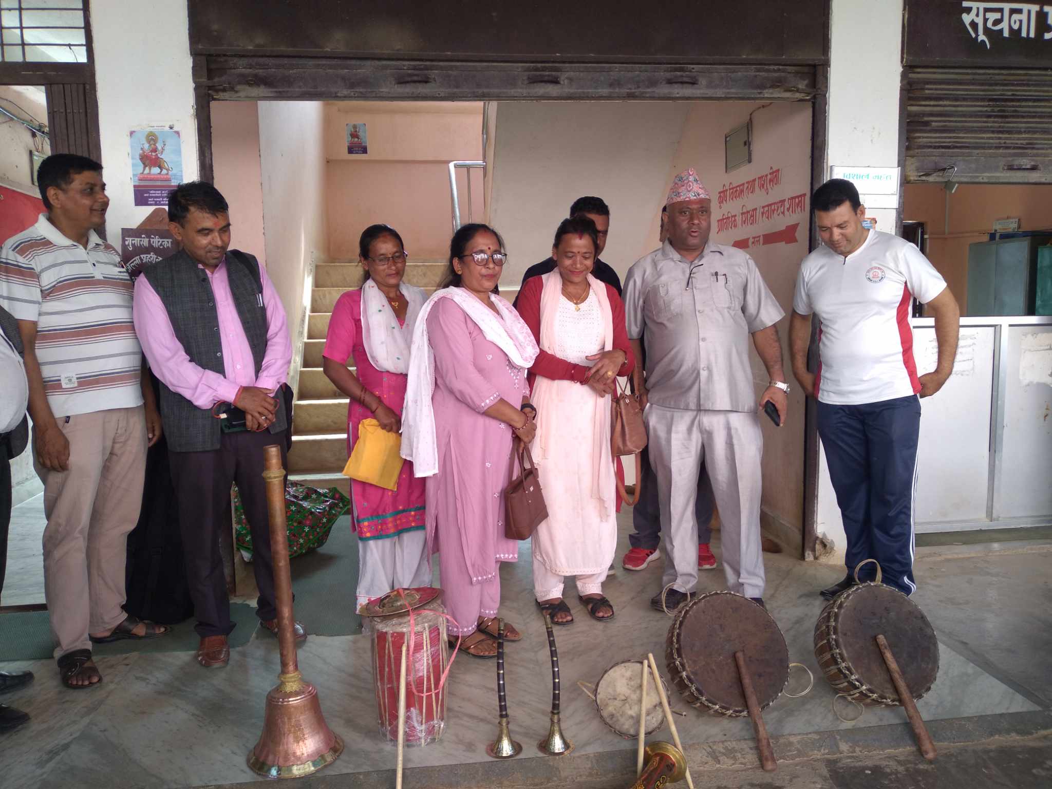 आश्विन ४ ,सन्धिखर्क – सन्धिखर्क नगरपालिकाले श्रृजनशिल नाैमति पन्चे बाजा समूह सनपा १२ डिभर्ना लाई एक सेट नाैमती पन्चे बाजा प्रदान गरेकाे छ । सन्धिखर्क नगरपालिका प्रमुख कृष्णप्रसाद श्रेष्ठ ले साे पन्चे बाजा समुहकी अध्यक्ष निमकला ताम्राकारलाई हस्तान्तरण गर्नु भएकाे छ । सन्धिखर्क नगरपालिकाकाे अार्थिक सहयाेगमा सिकाई प्रबर्द्धन र सामाग्री हस्तान्तरण कार्यक्रम अन्तरगत यी बाजा प्रदान गरिएकाे हाे ।