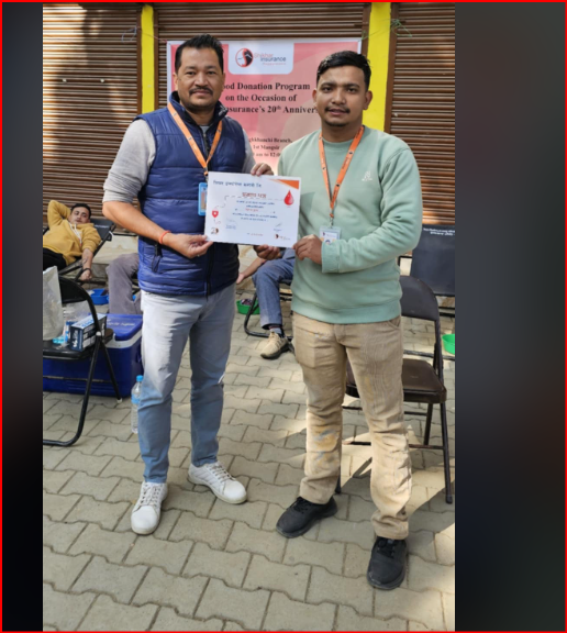 ईन्सुरेन्सले रक्तदान आयोजना गरेर रक्तदान बारे सचेतना र रगतको अभाव पुर्तिमा सहयोग पुर्याएको अर्घाखाँची अस्पतालमा कार्यरत स्वास्थ्य कर्मी कृष्ण कुमालले जानकारी दिनुभयो ।