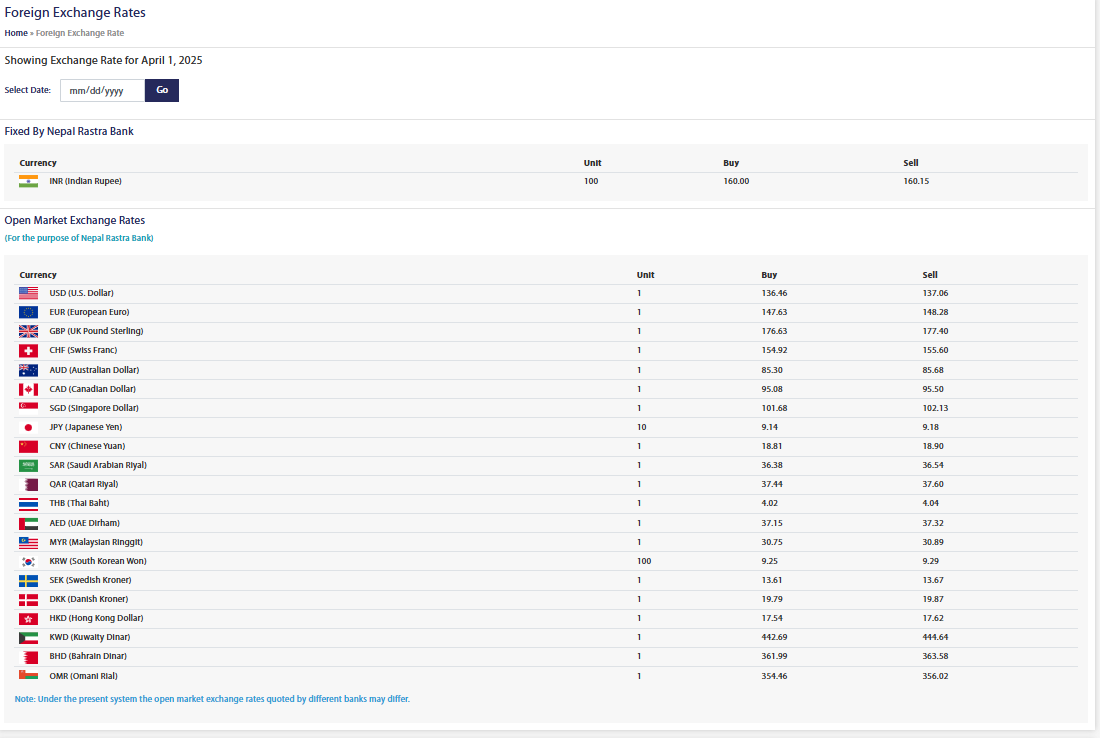 हेर्नुहोस् राष्ट्र बैंकले निर्धारण गरेको सबै मुद्राको विनिमय दर